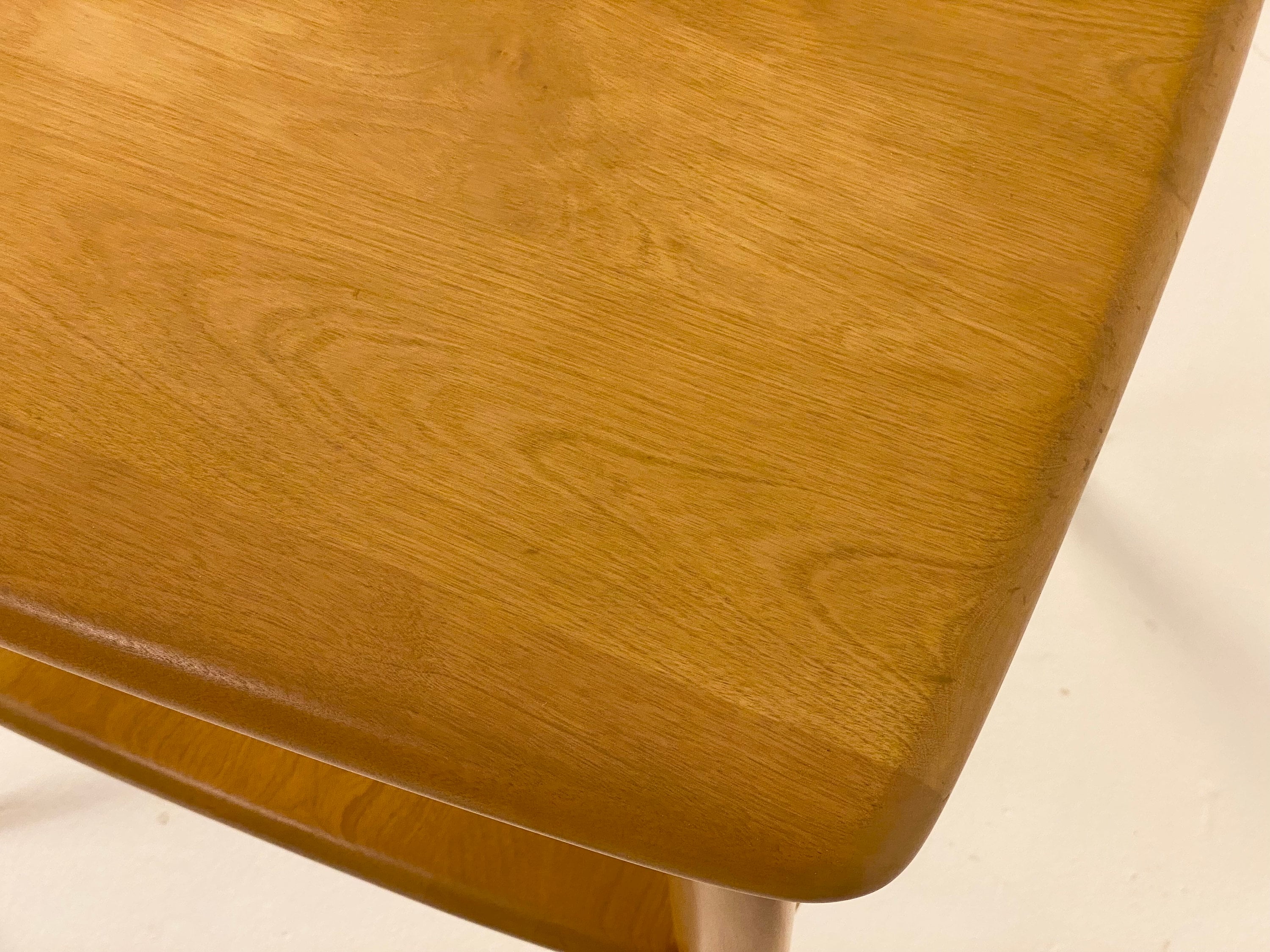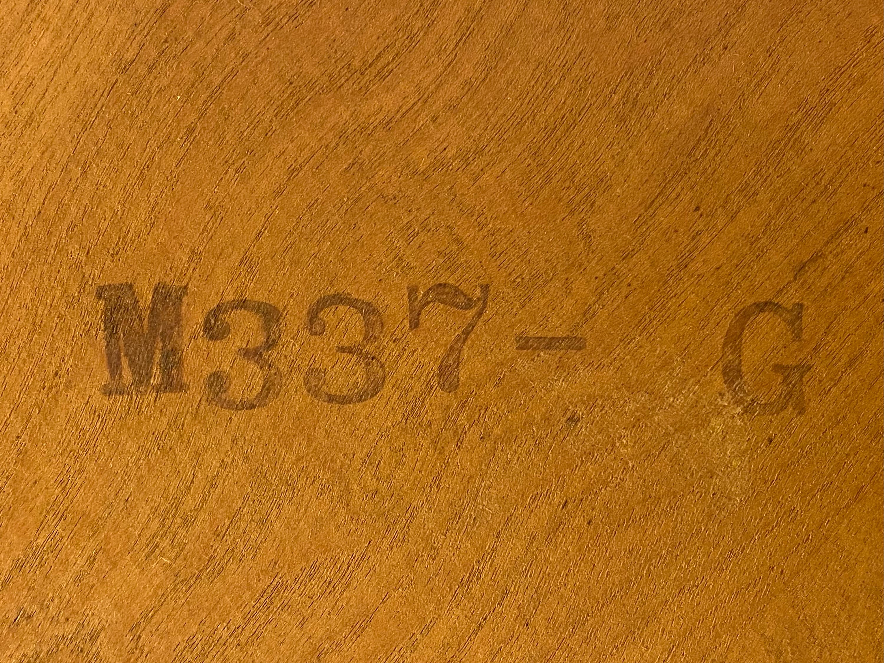 Here is a beautifully restored lamp table model number M337G by Heywood Wakefield for their Modern line, circa 1950s. This table was crafted from solid birch wood by Heywood Wakefield from 1950 to 1953 and it still retains its original markings. This table was taken apart, sanded, and refinished in wheat. there was a small repair completed to one of the legs where it attaches to the tabletop, Please see our last photos and this table does sit sturdily. We will note that this table is Wheat and shows a little darker in our photos. Overall this table is in good restored condition. Please feel free to reach out if you have any questions - thanks!