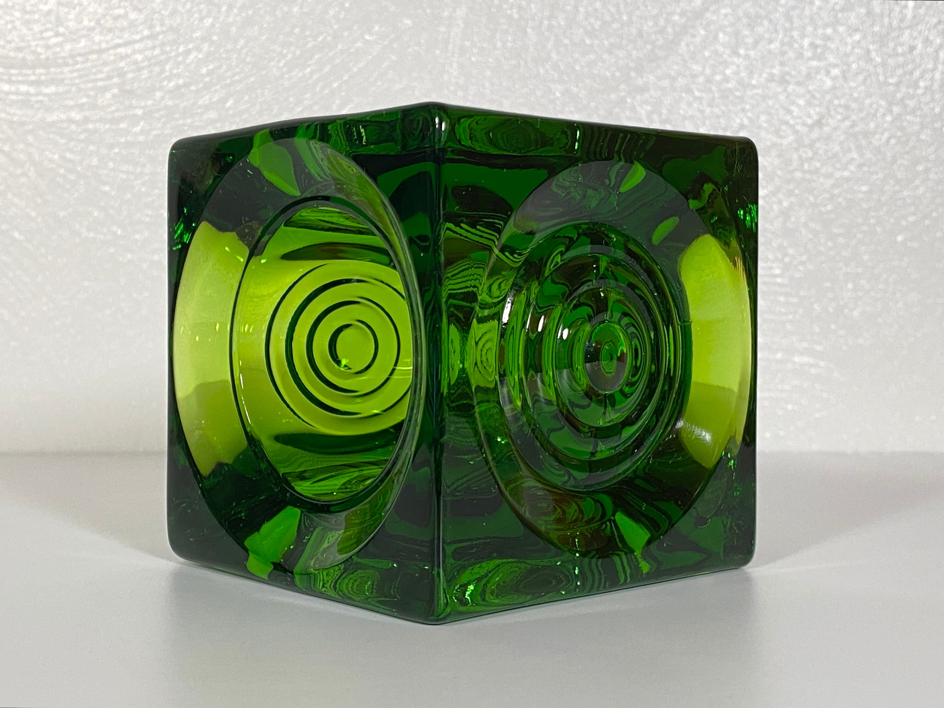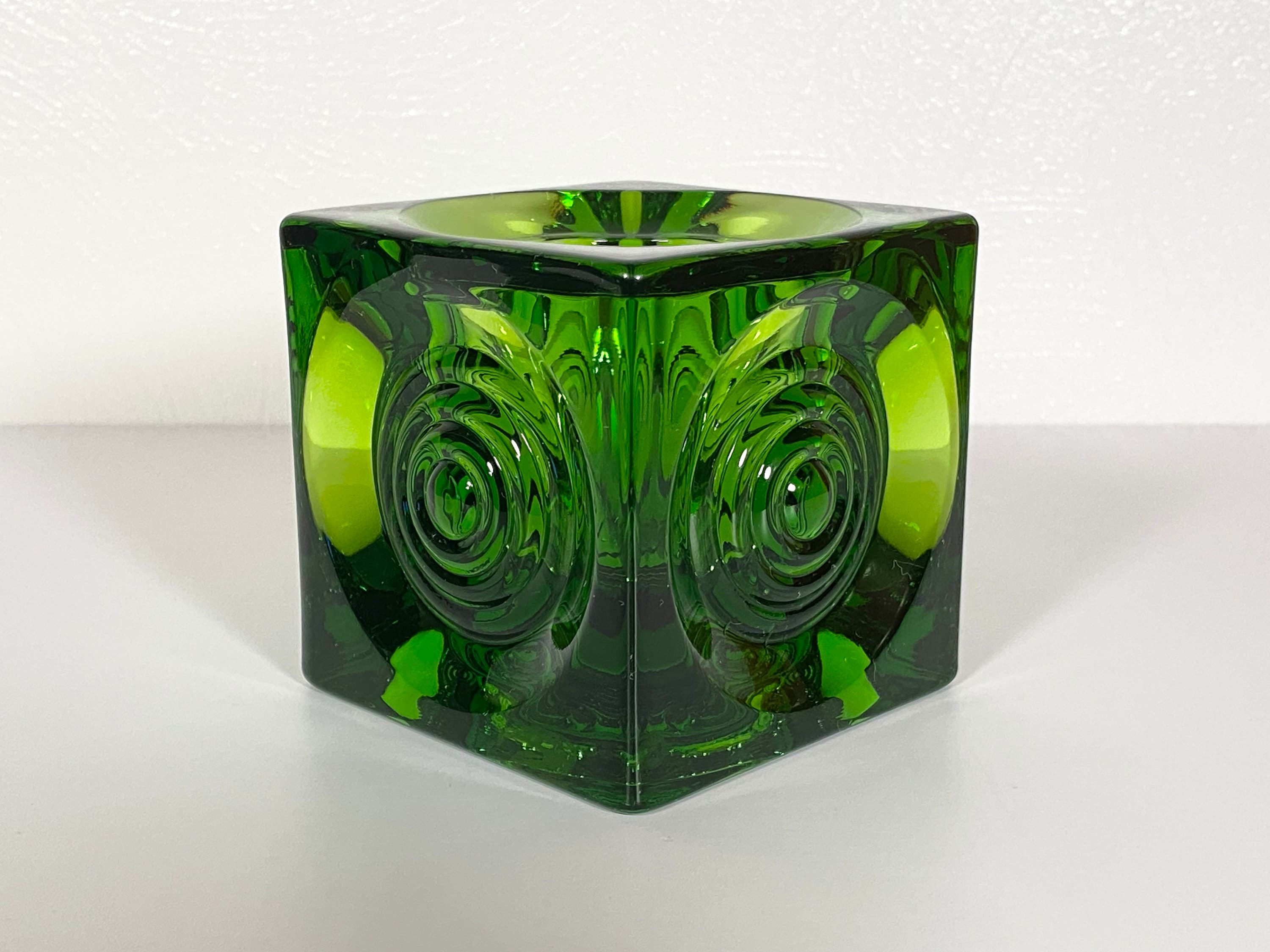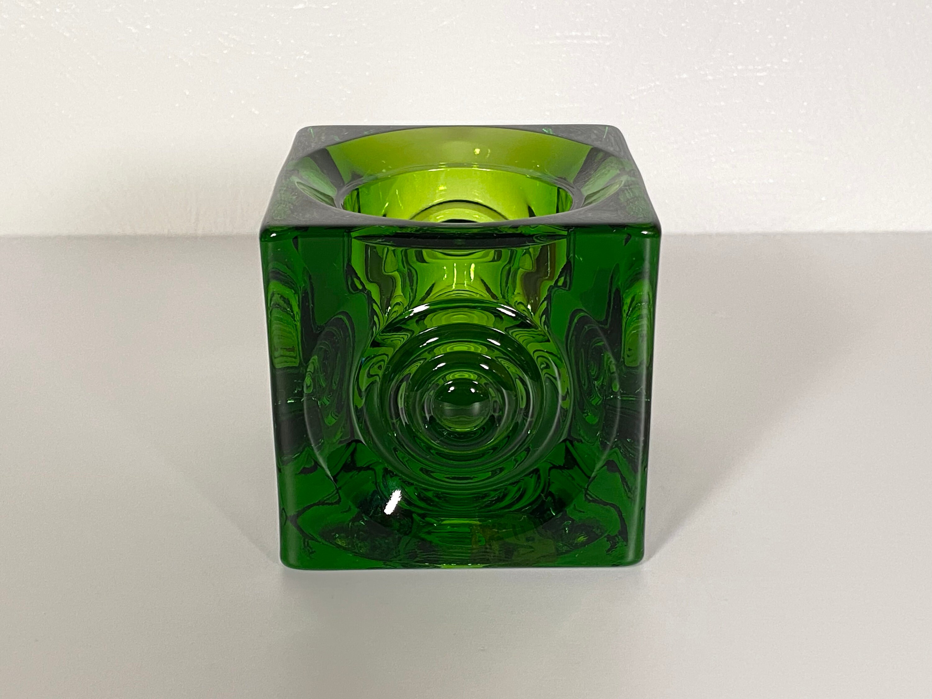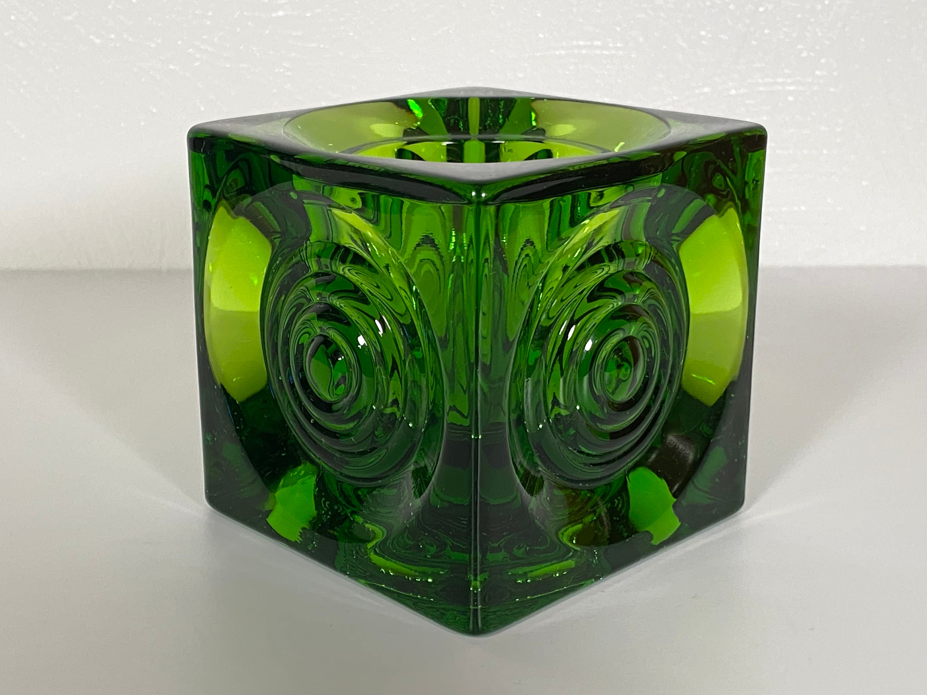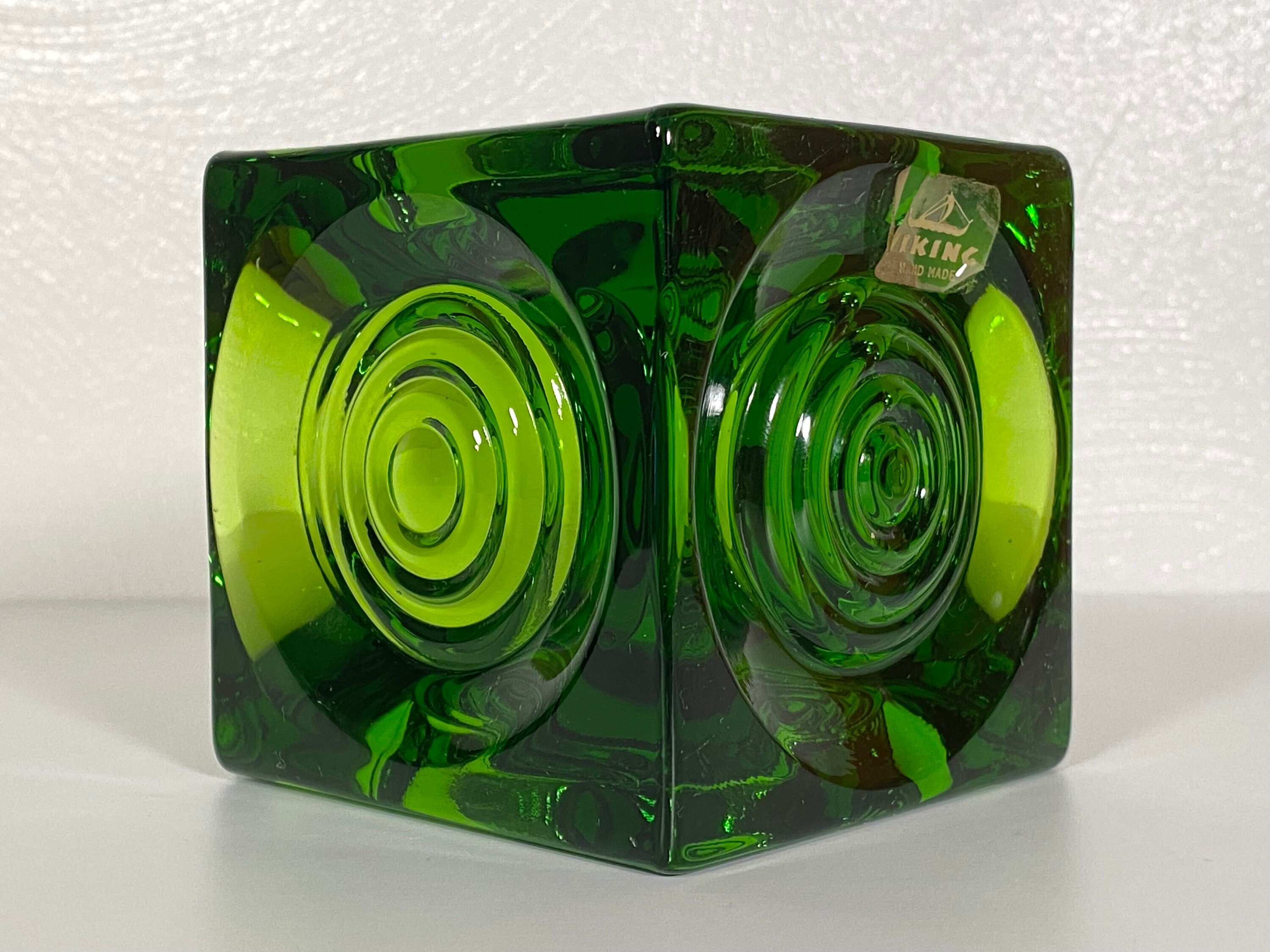 This beautiful Viking Bullseye green glass candle/votive holder is in very good condition with no cracks or chips and very minor/negligible scuffs so faint the camera couldn't catch them. Measures approximately 3.5" in any direction. Great for display, everyday use, or to add to a larger Viking glass collection. Please see photos for condition and decide for yourself as all sales are final. Thank you!