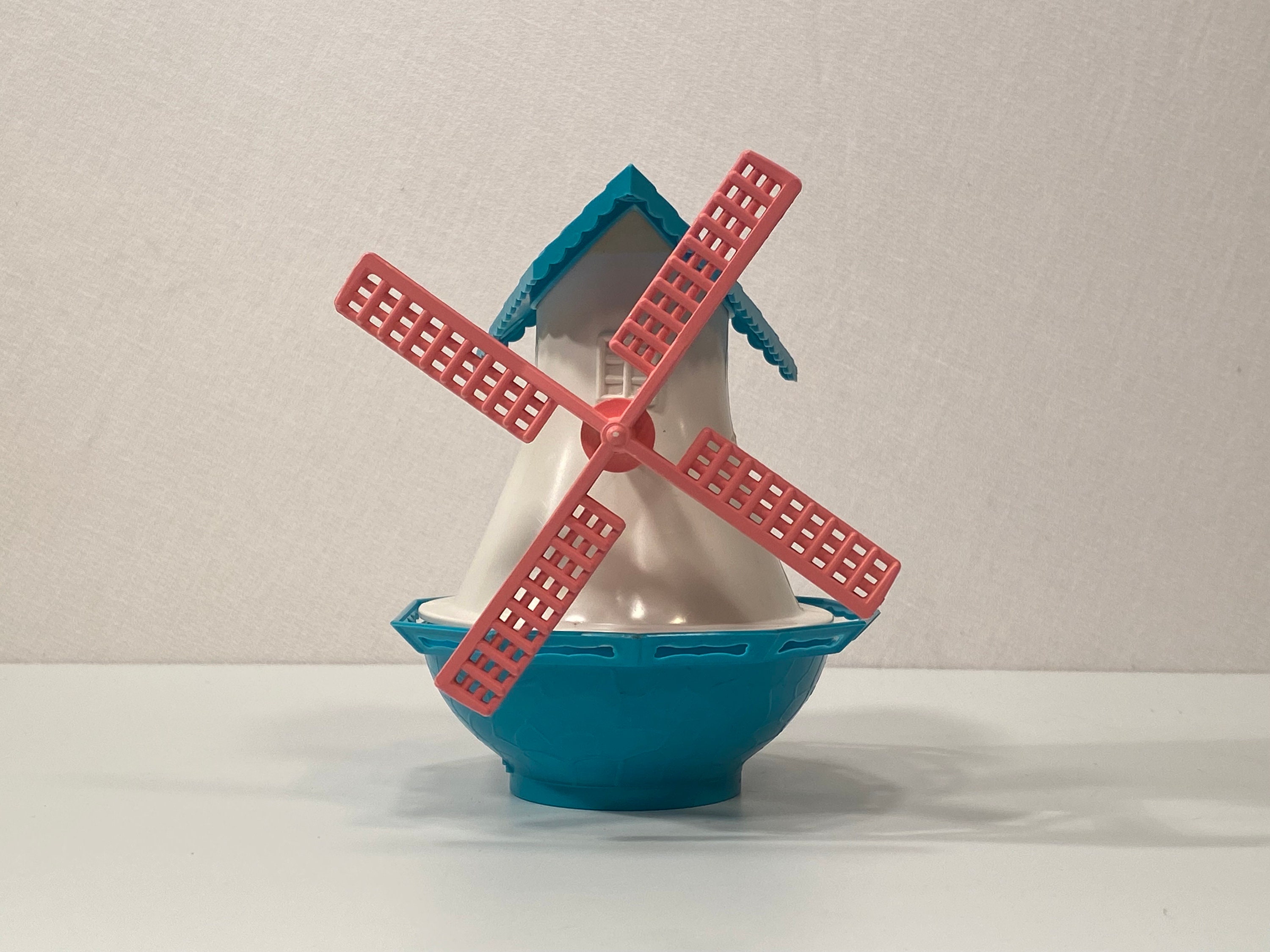 Kitschy Dutch Mill Salt, Pepper, and Sugar Set in great condition with no cracks or chips. Original Box included! Stands at 5.5" tall overall. The salt and pepper shakers pop out of the roof by turning the fan blades left or right. Some light age appropriate discoloration along the seam of the white portion. Please see photos for condition and decide for yourself as all sales are final.