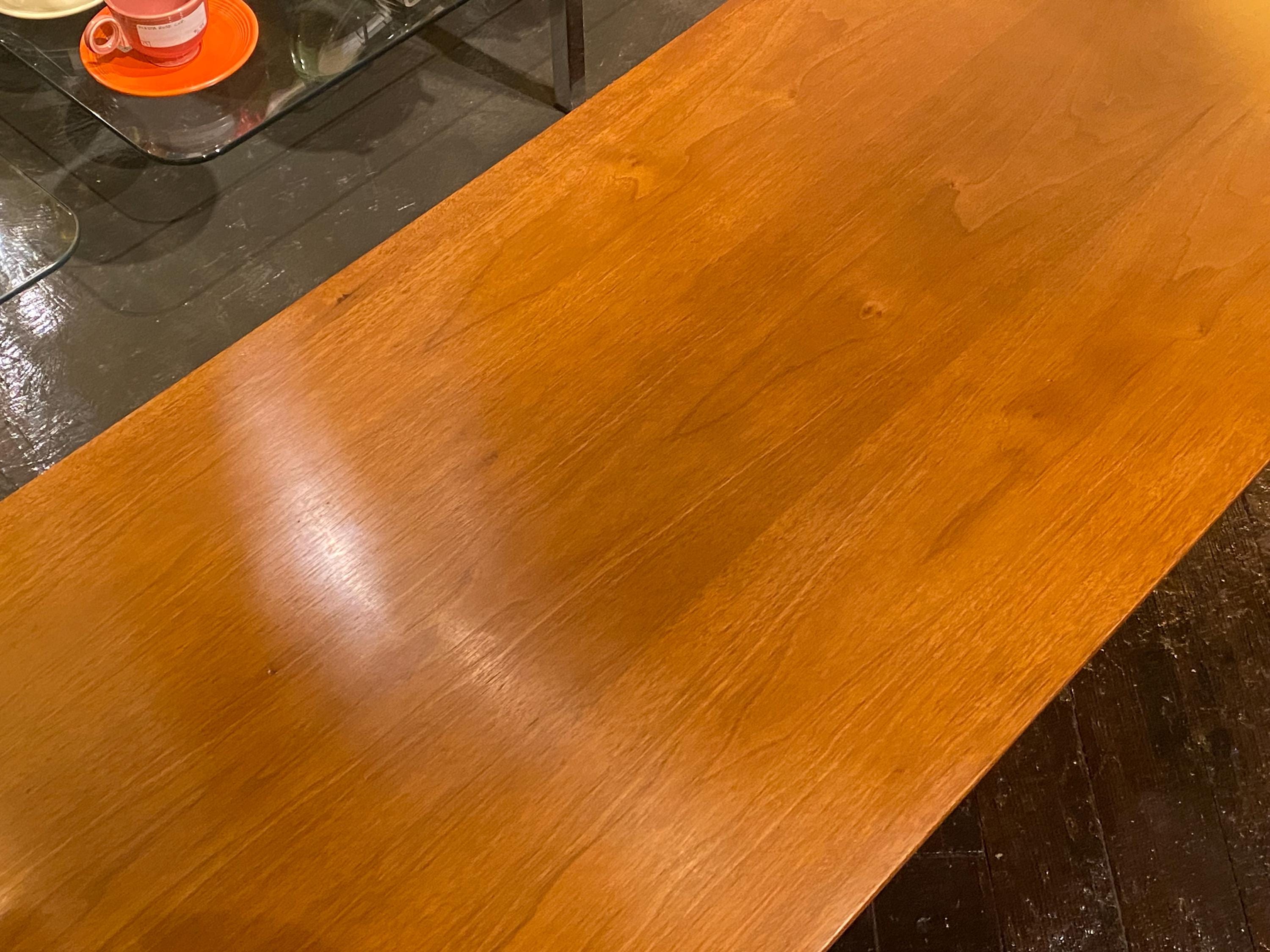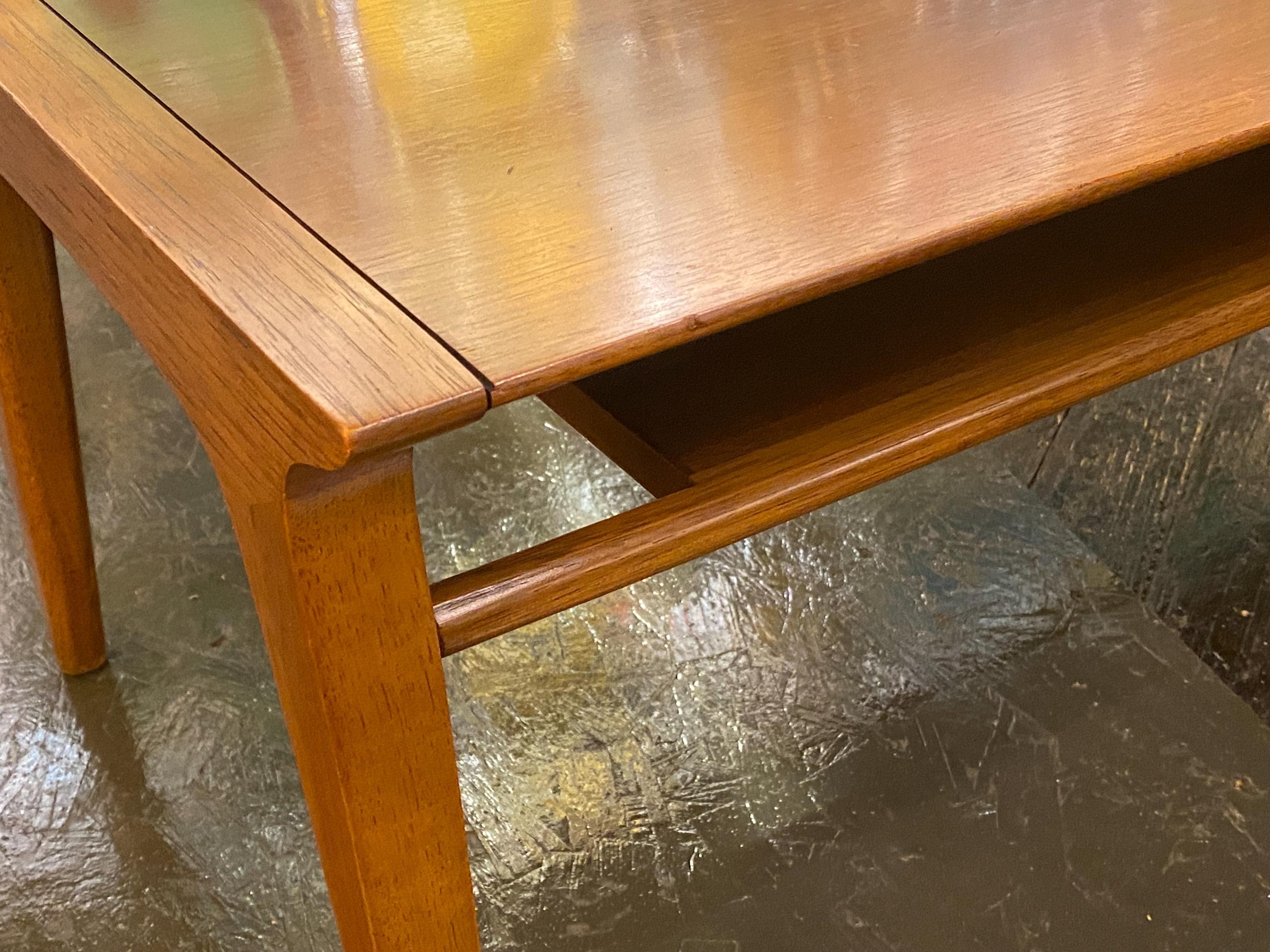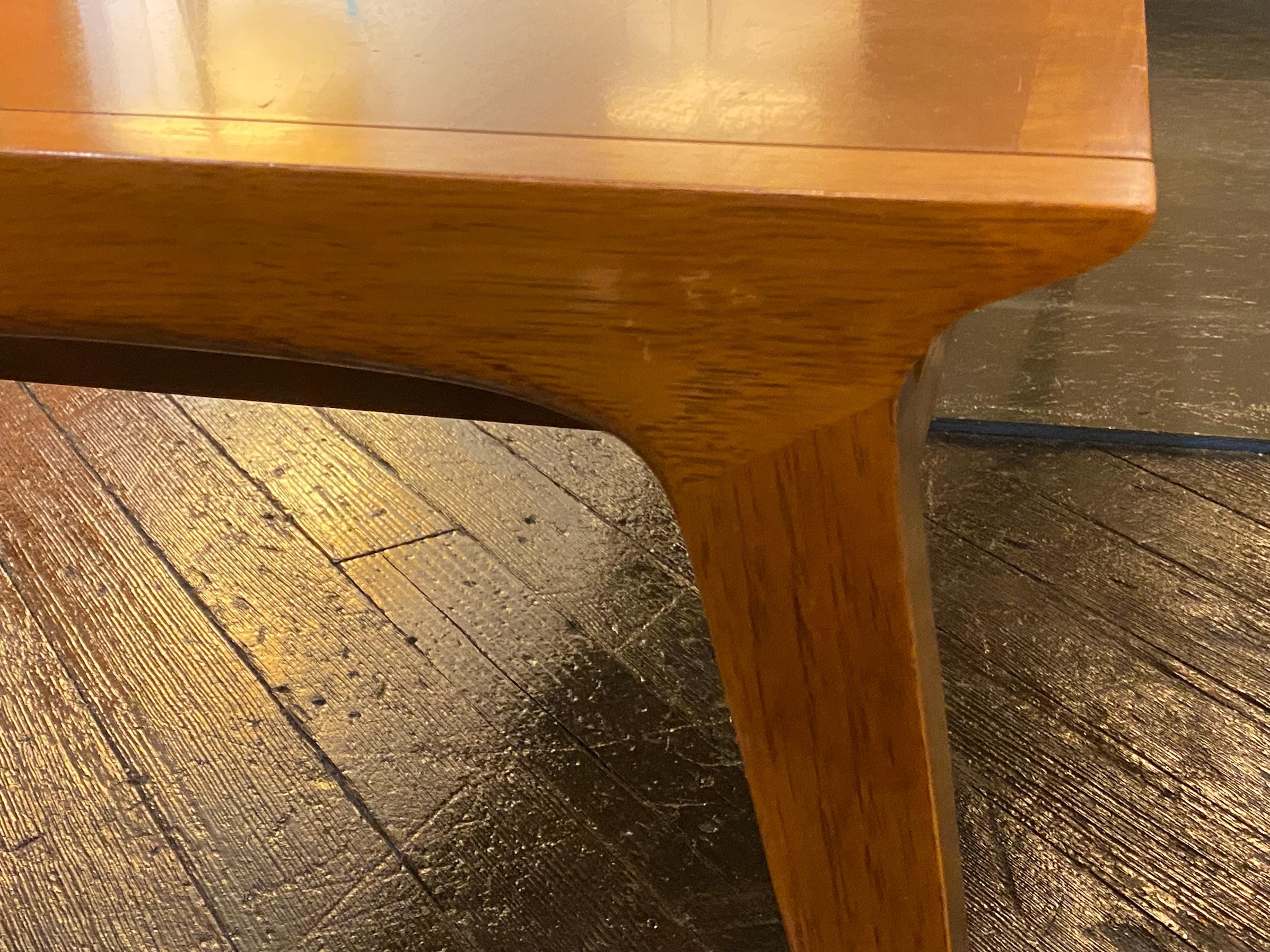 Here is a very nice all-original coffee table by Drexel for their Profile line, circa 1960s. This coffee table showcases a very unique style of modern design and is made from walnut wood. The modern streamlined design would make this a great asset to any mid-century, modern-inspired home. This table features a long magazine shelf underneath the top and this does have a small amount of wear. Overall, this table is in good original condition with very minimal signs of wear from use. Please see our last few images for details on the tabletop condition.