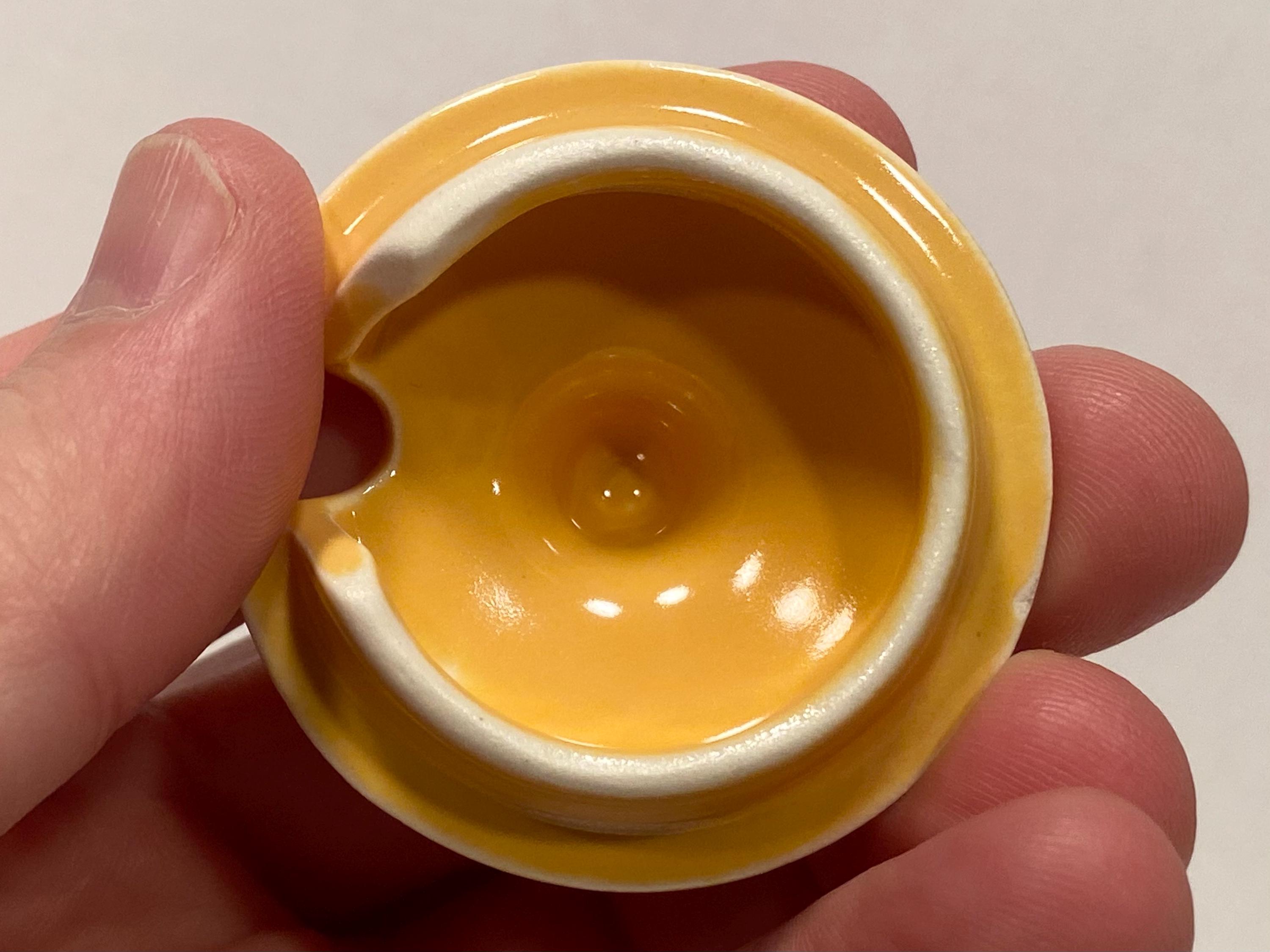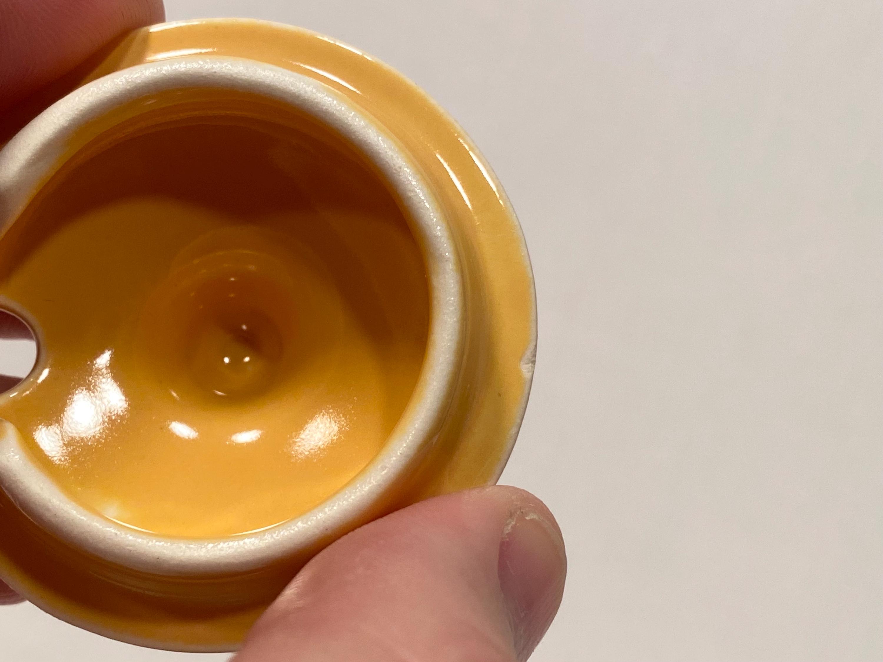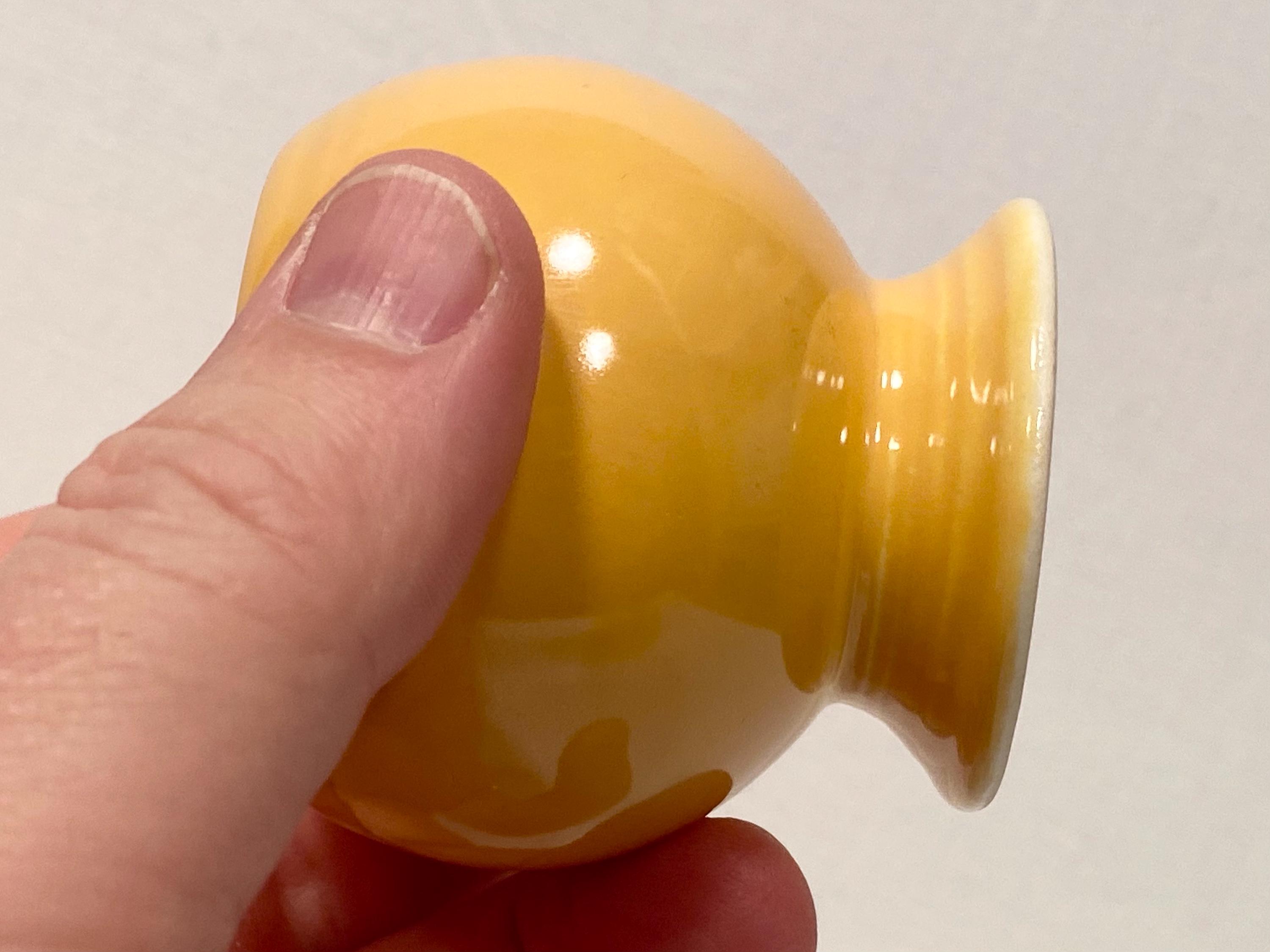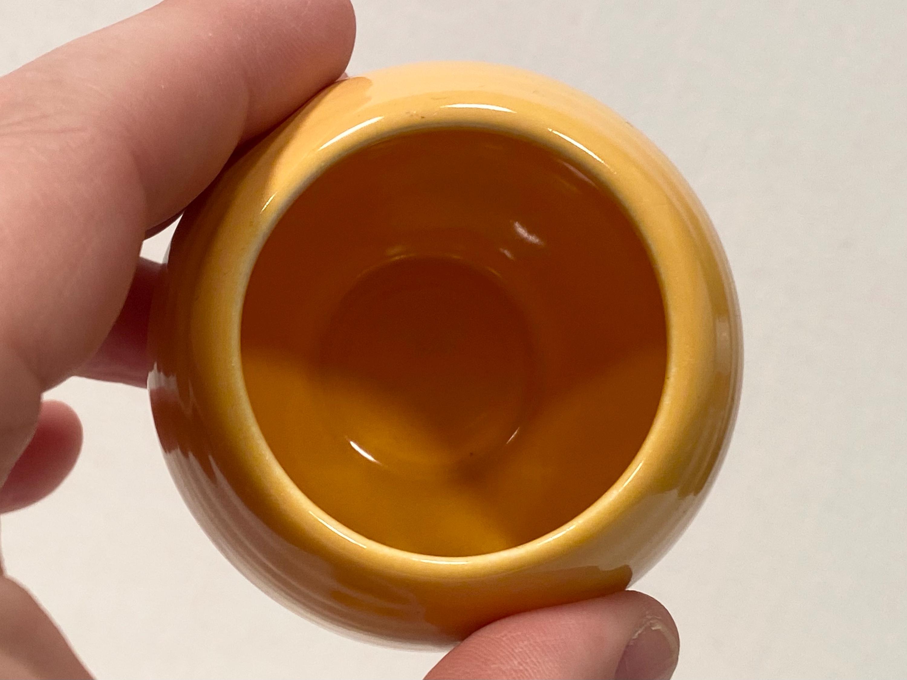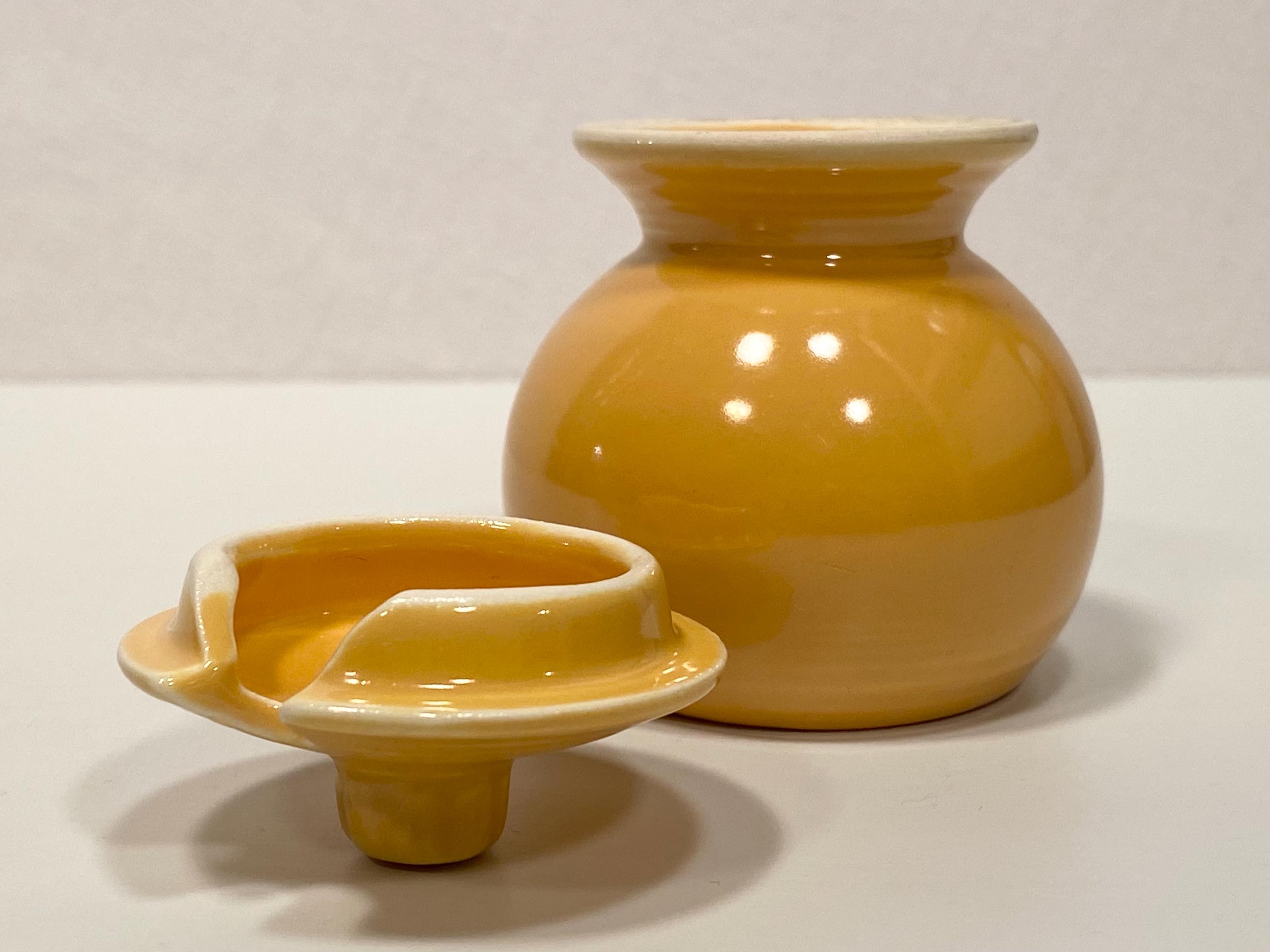 Fiesta Yellow Covered Mustard Jar in very good condition with no cracks or major chips. One small "flea bite" in the underside of the lid, but it can not be seen when sitting upright. Great for display or use everyday for storing mustard or other spreadable condiments or dips. Approximately 2 1/2" wide by 3 1/16" tall. Please see photos for condition and decide for yourself as all sales are final.