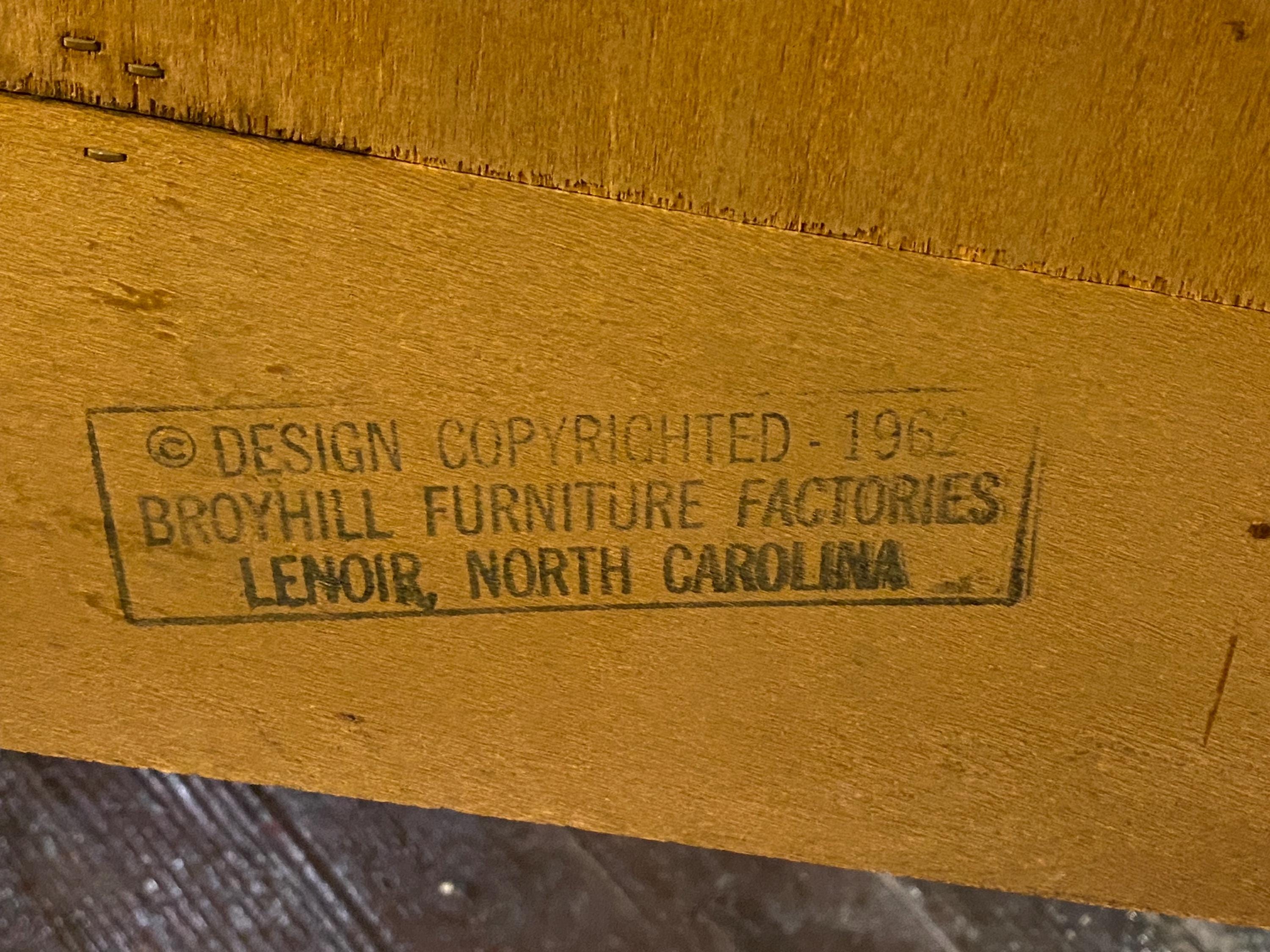 Available now is a very nicely preserved king-size alnut headboard by Broyhill for their Brasilia line, circa 1960s. This piece is in good condition with very minimal signs of wear. Please see our images for details and reach out if you have any questions. Thanks for looking!