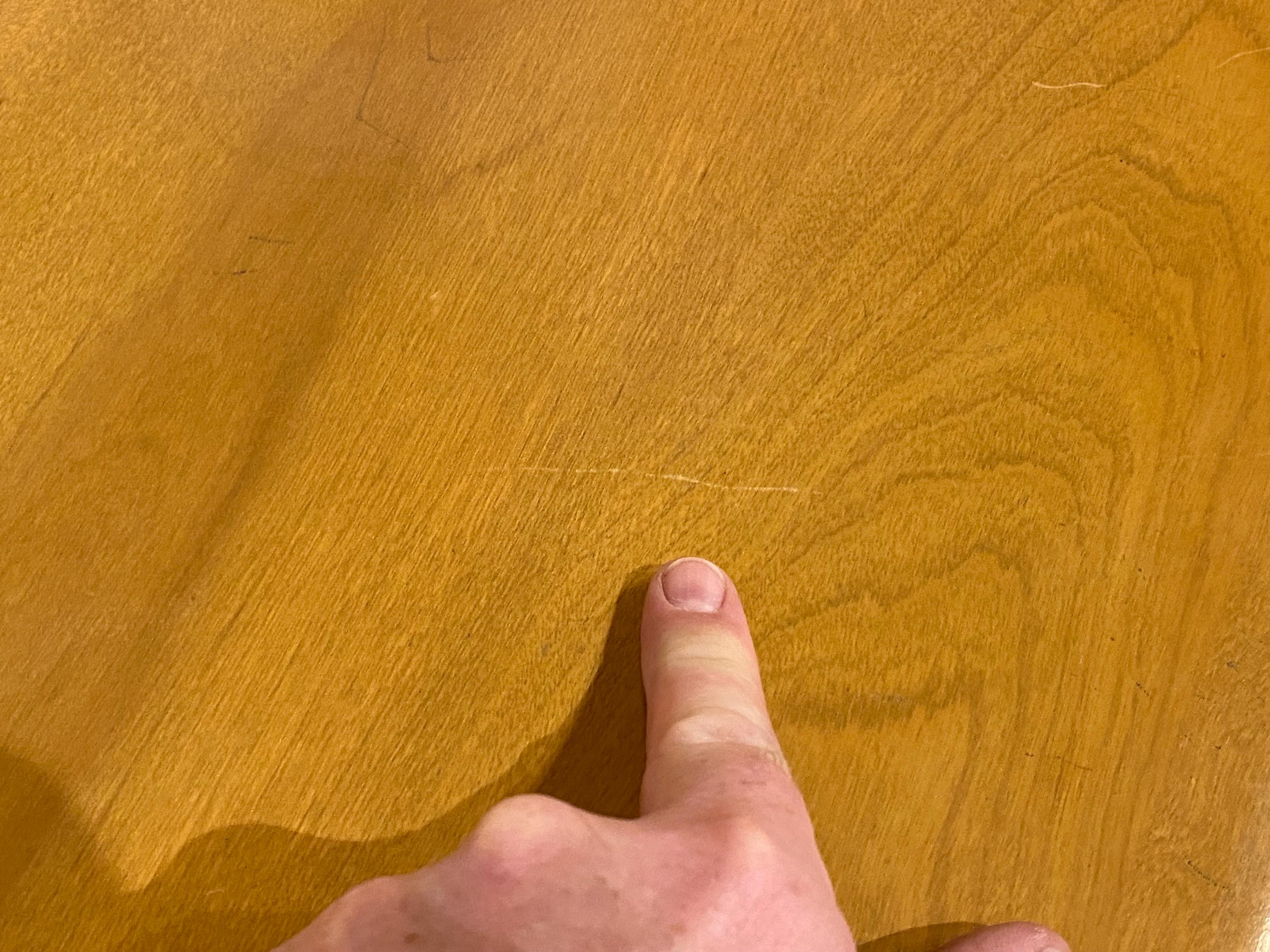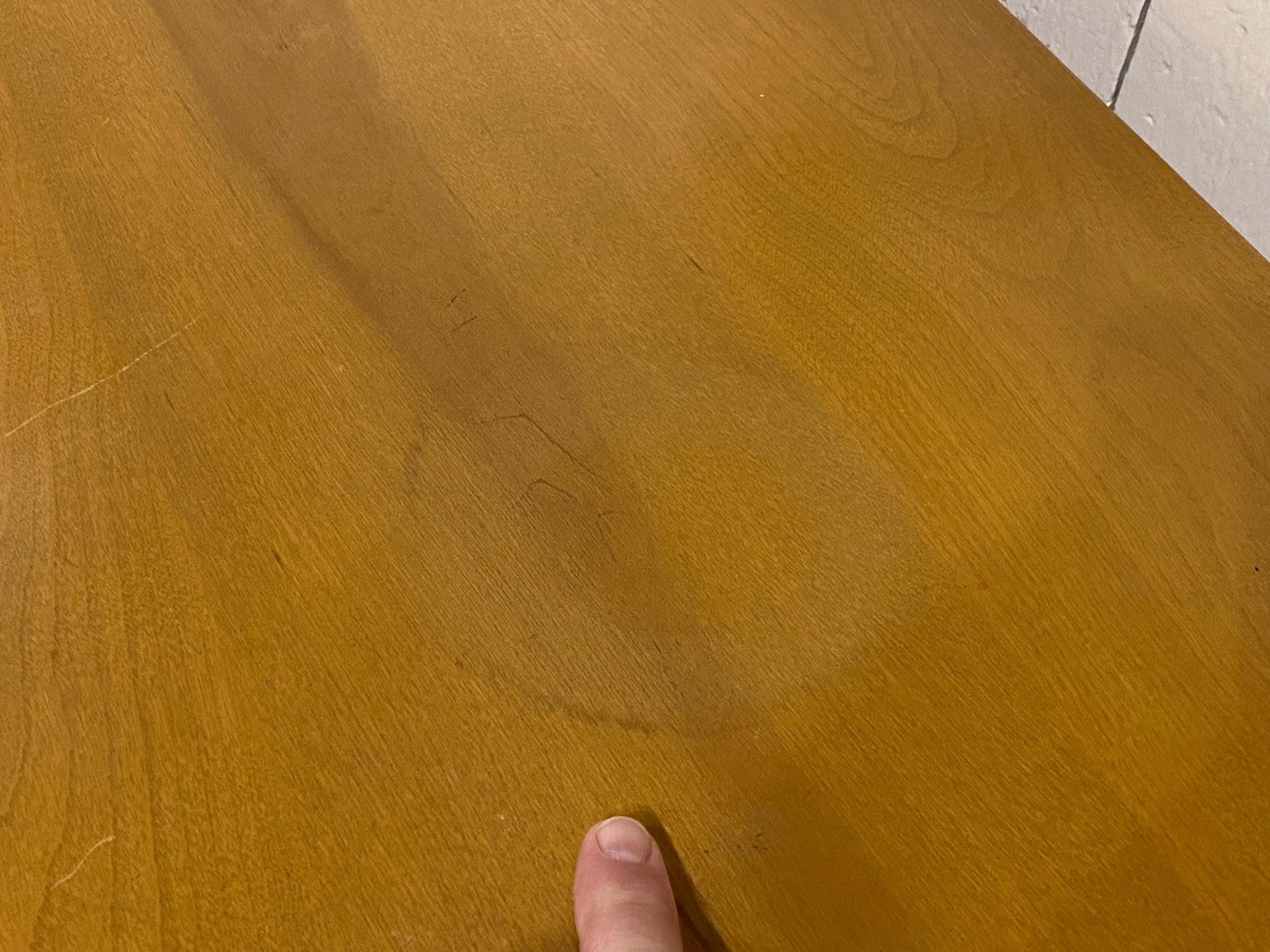 The top of this piece has some light wear to the finish from age/use. There is one large, faint plant ring that can be seen in our images. Please feel free to reach out if you have any questions, and thanks for your interest in this piece.