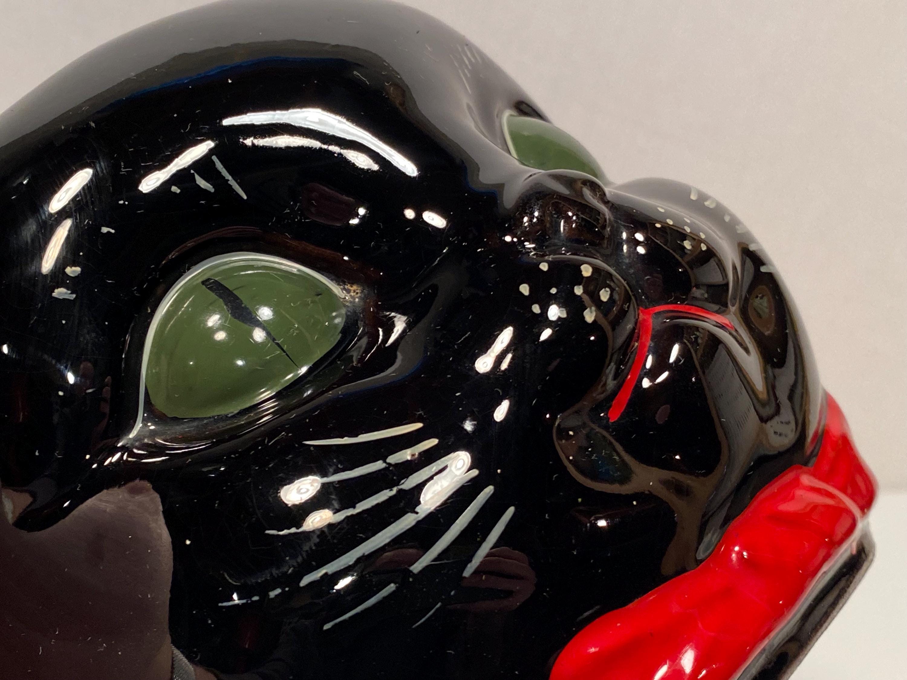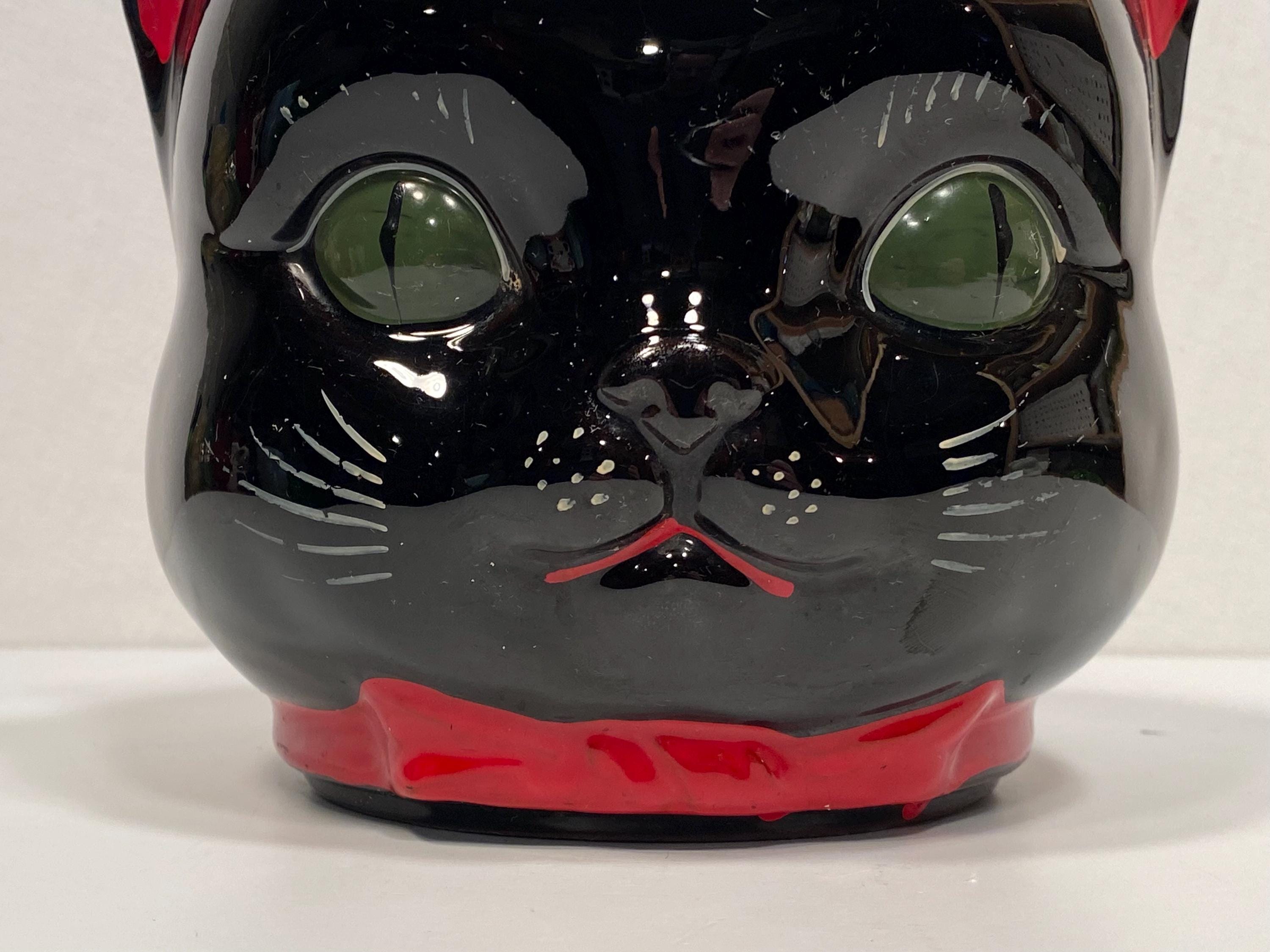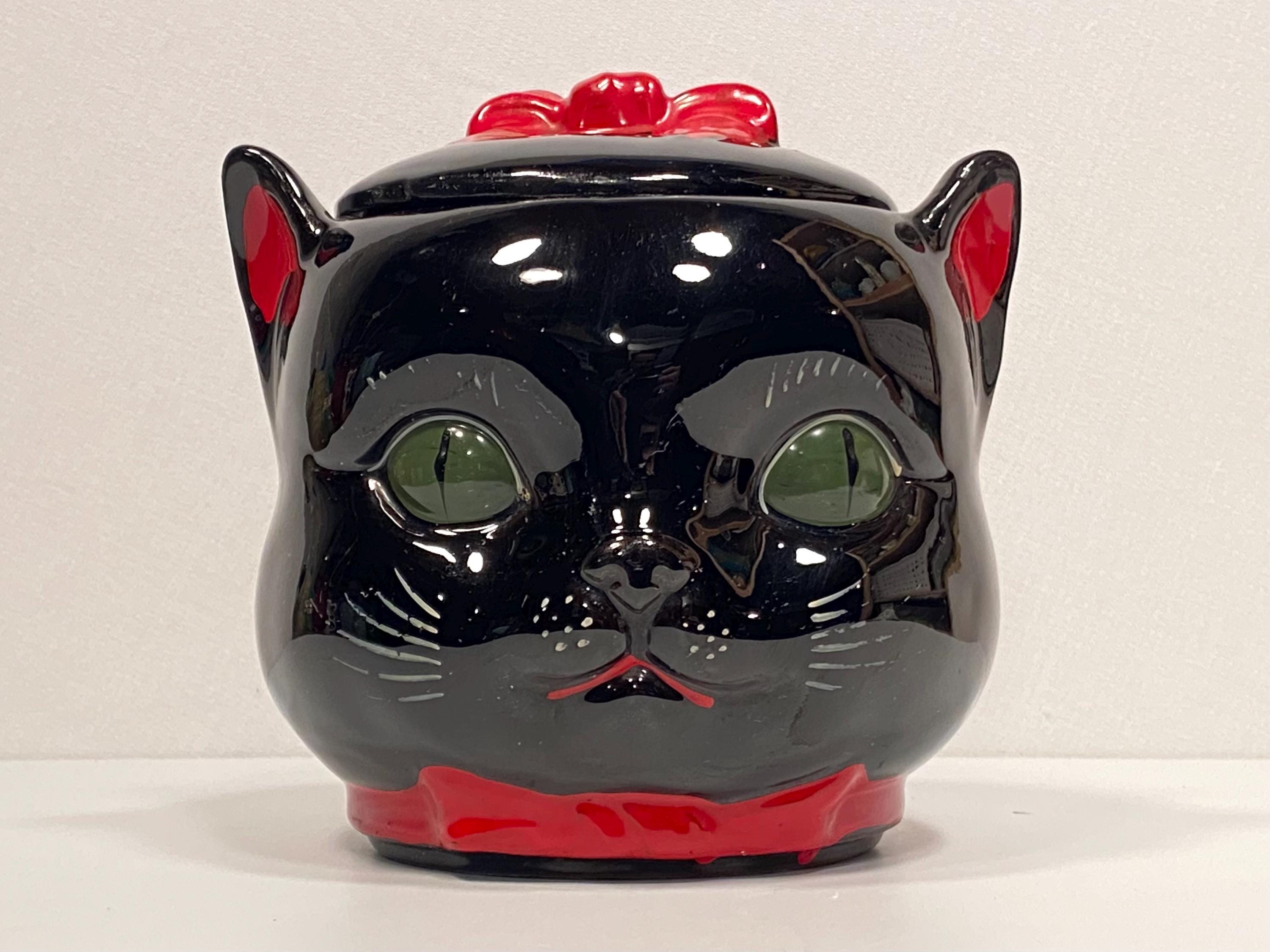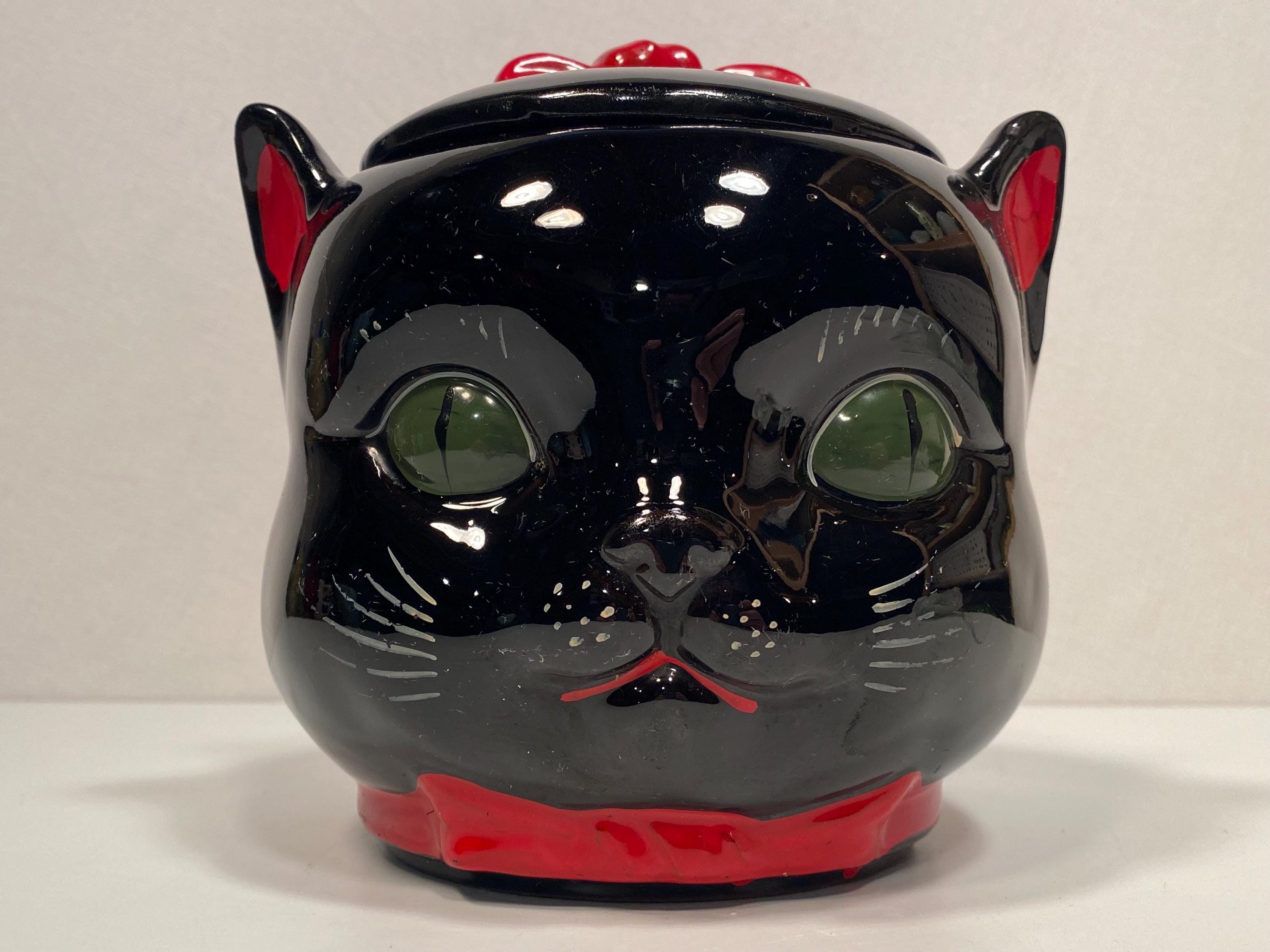 Shafford Cat Head Cookie / Biscuit Jar in good condition. *One small repaired area where a piece must have been glued back on by a previous owner. This is one the inside of the rim of the base. This can be seen highlighted as a close up in our last picture. *Priced accordingly. It still would display beautifully as this flaw cannot be seen when the lid is on. Measures approximately 6.5" wide and 6.5" tall.