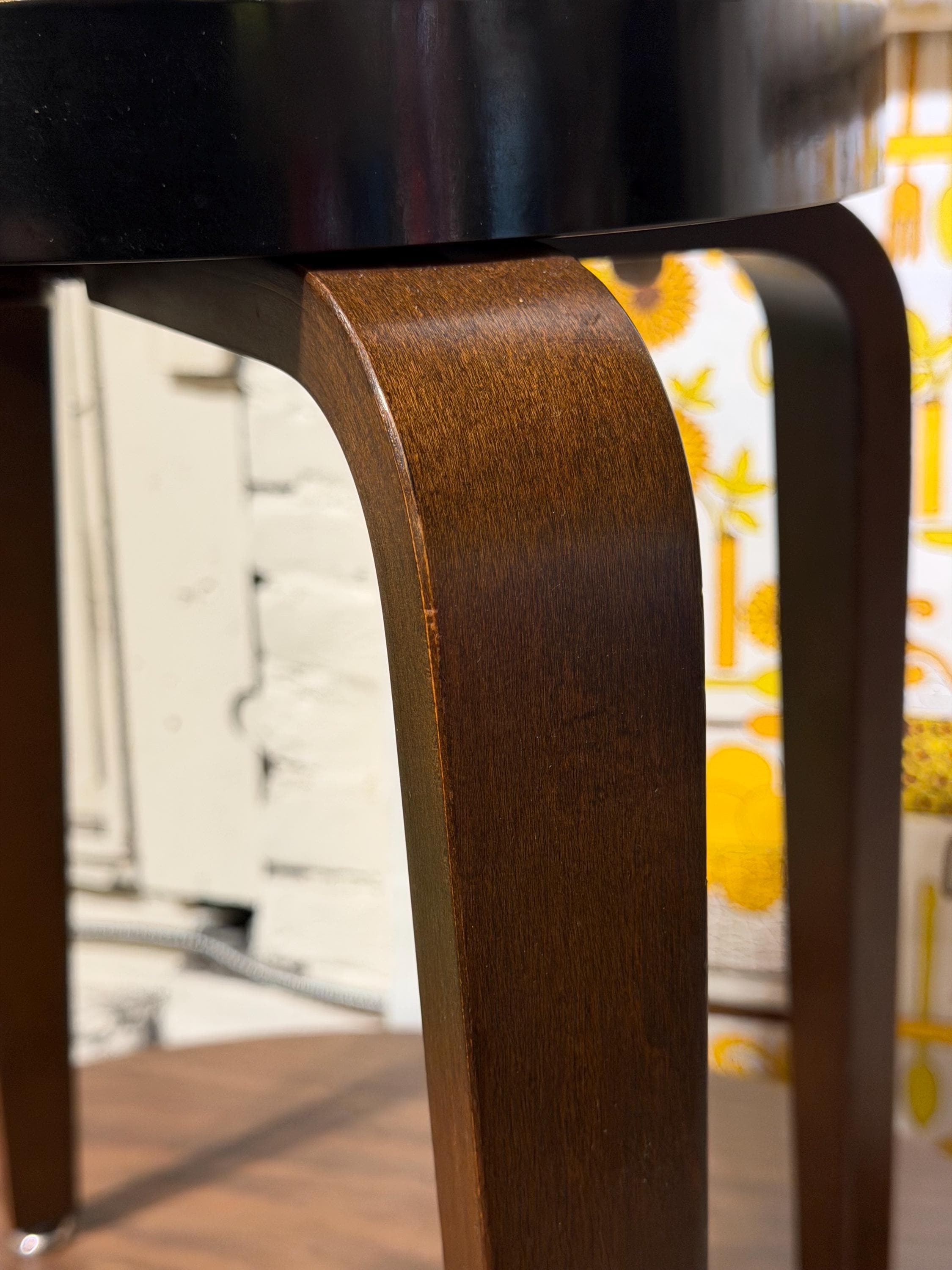 This 1950s-era stool was produced by the Thonet Furniture Company at its York, Pennsylvania, plant. The bent plywood legs—an iconic element of Thonet’s mid-century designs—were a major focus of production at the York facility and remain a hallmark of the brand’s modernist legacy.