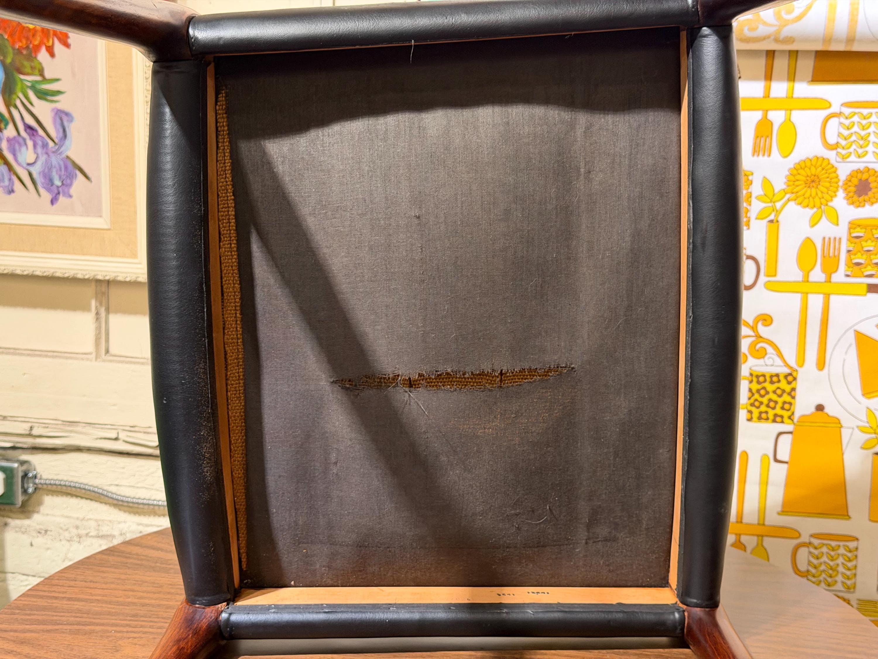 The original leather seat shows light wear and a few small paint specks, consistent with age, but remains in very good condition and has held up beautifully over time.