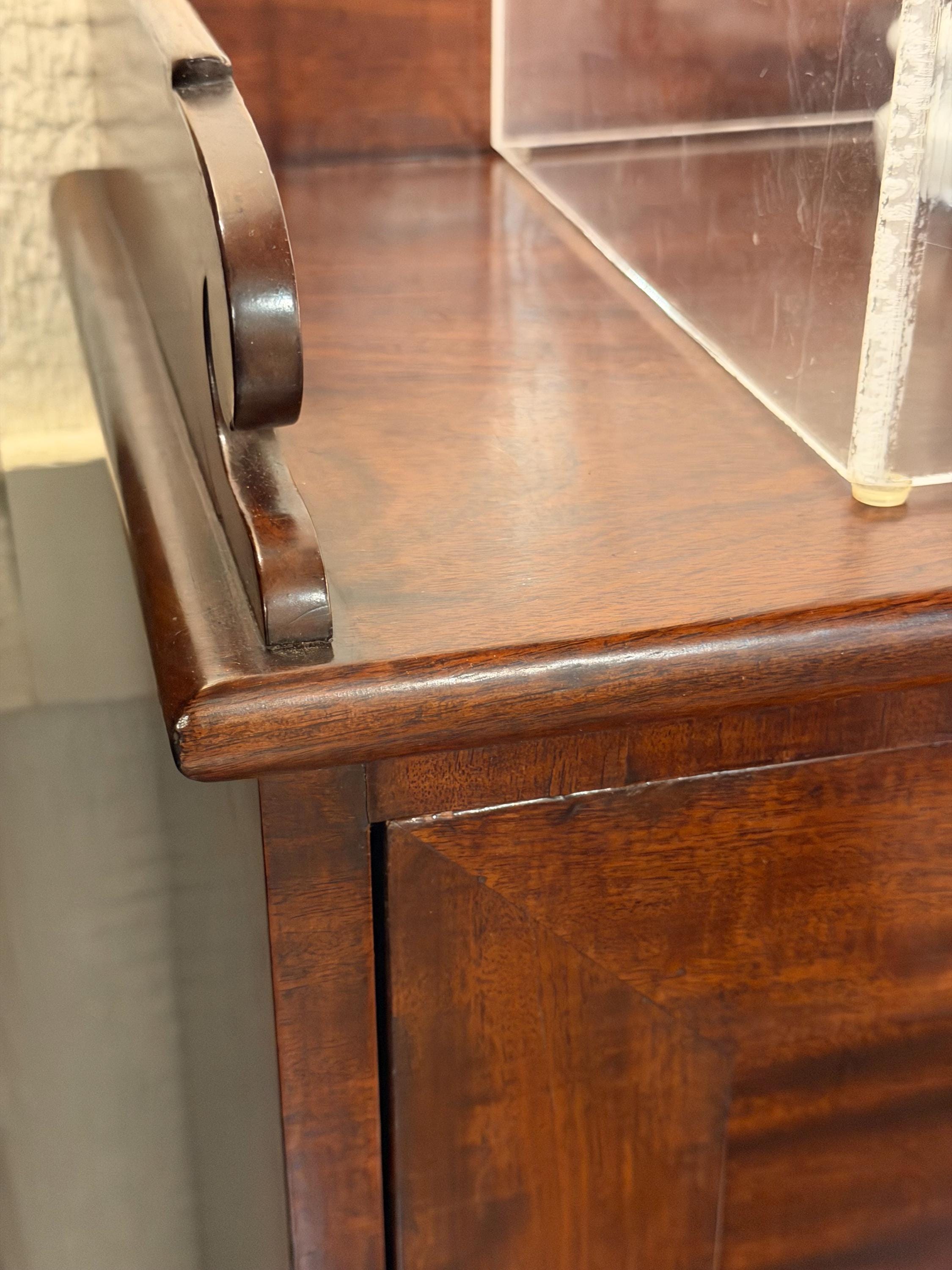 Based on our research, this desk dates to circa 1850 and originated in the Baltimore, Maryland area. The desk was originally owned by George P. Thomas Sr., who left a handwritten note inside the desk dated December 24, 1874, expressing his wish to leave the desk to his son, George P. Thomas Jr. A copy of this letter is included in our photos for reference.