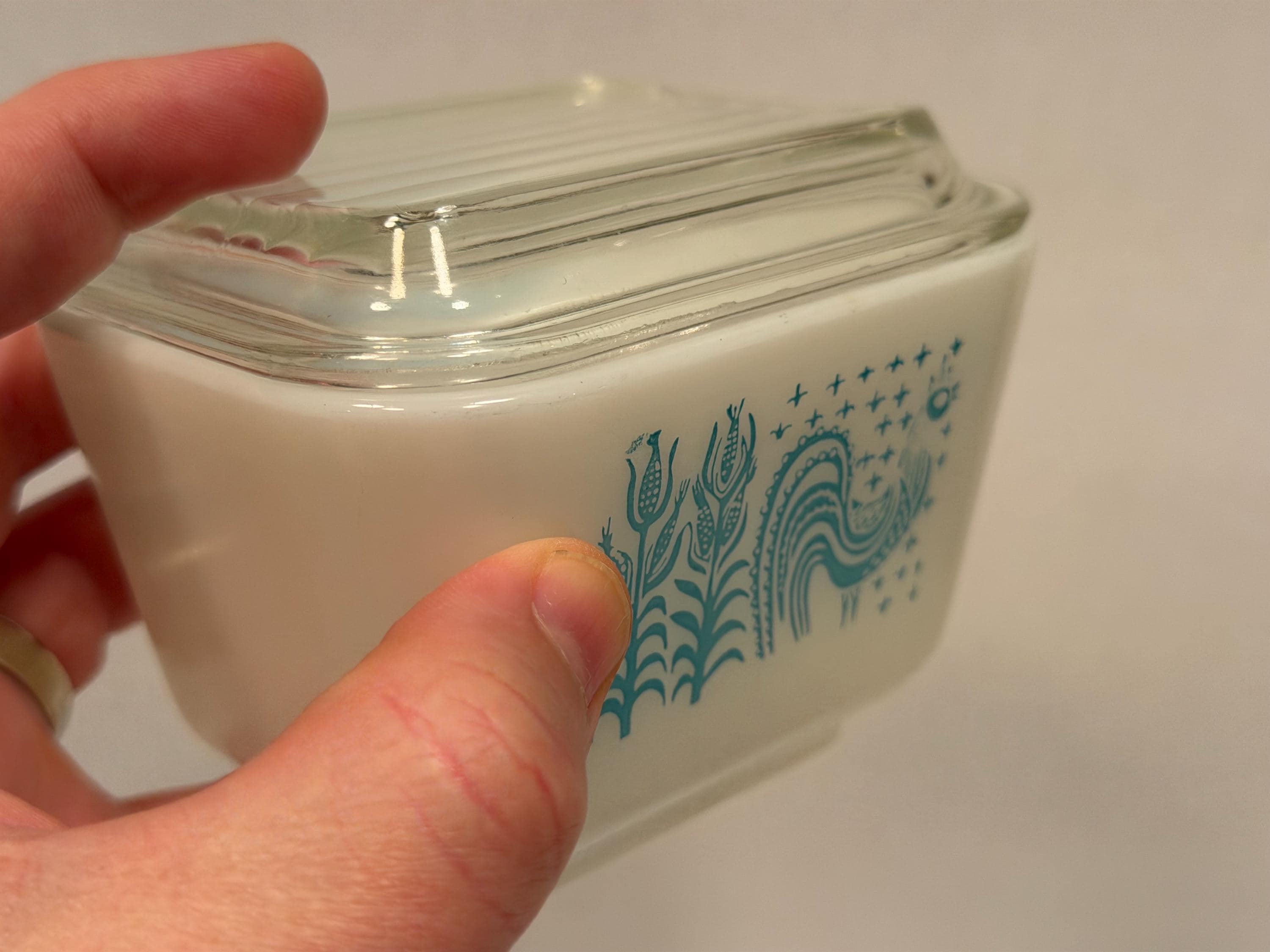 Pyrex #501 Butterprint 1.5 Cup Refrigerator Dish in great condition with no cracks or chips. Color is good with no signs of dishwasher wear or fading. Great for display or use everyday. Hand washing strongly recommended for longevity. Please see photos for condition and decide for yourself as all sales are final.