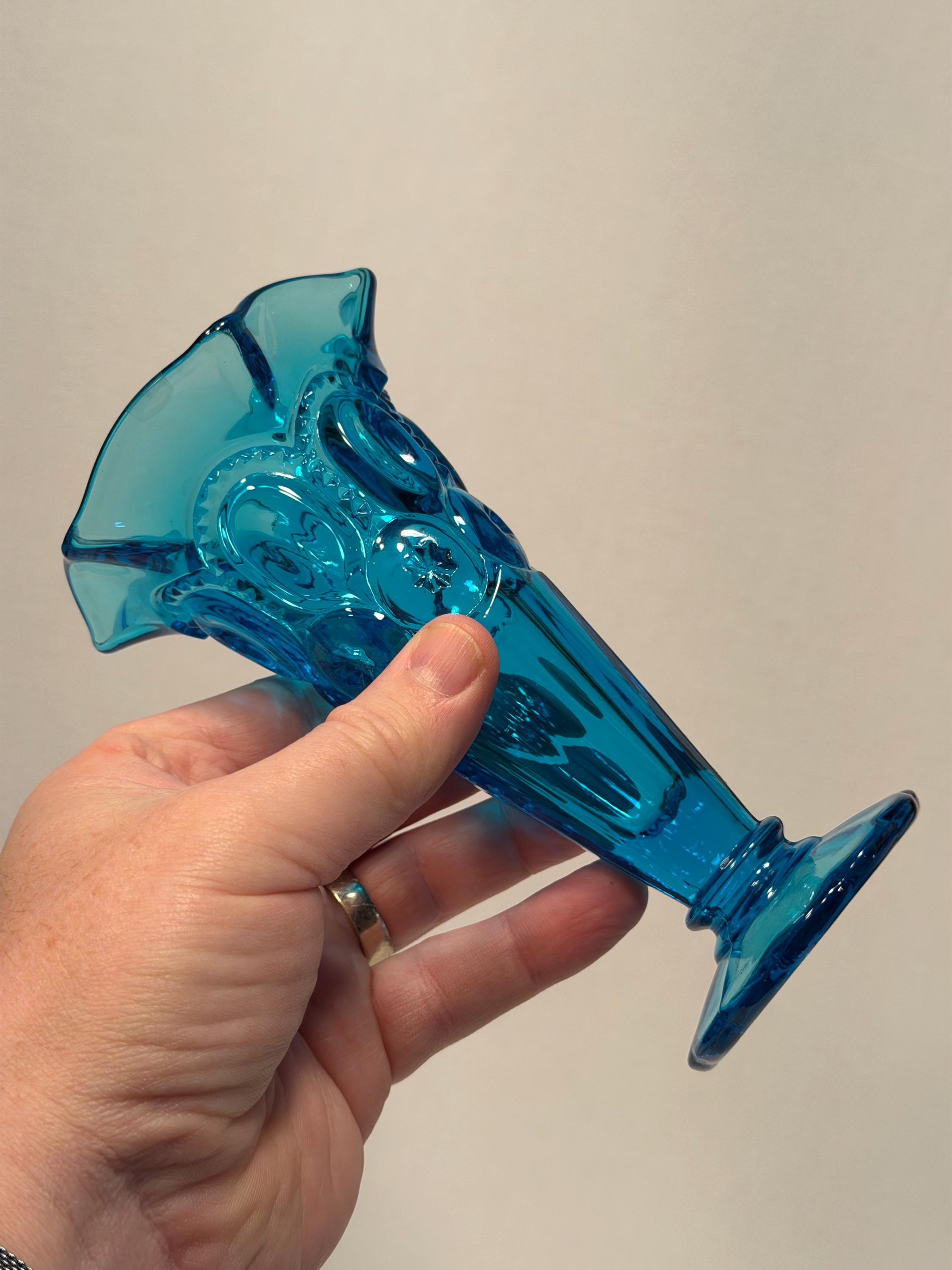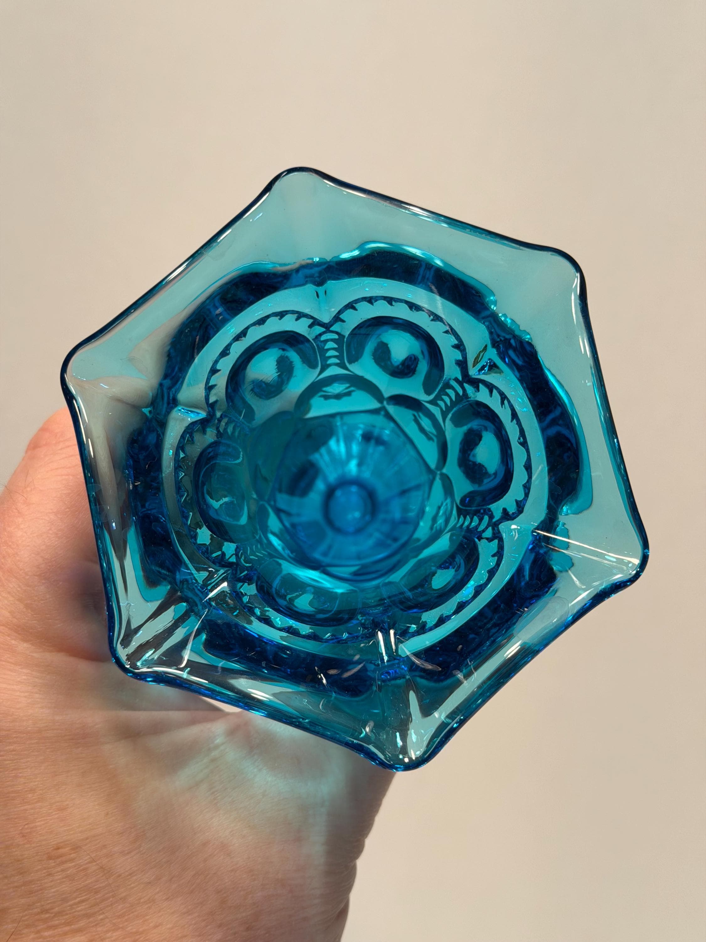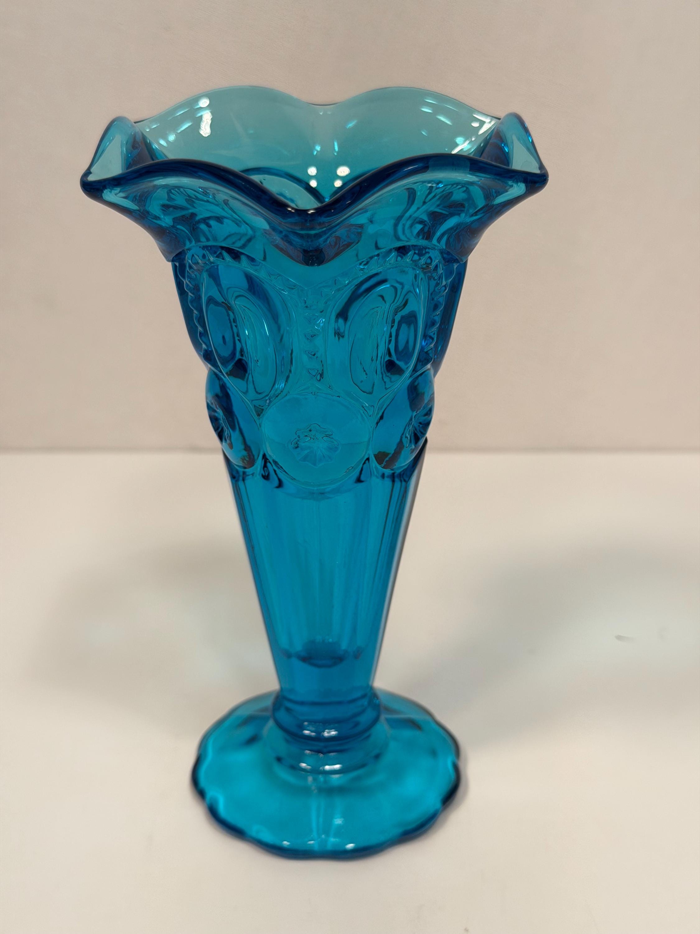 L.E. Smith Moon and Stars Blue Glass Bud Vase in great condition with no cracks or chips. Great for display or use as a vase as intended. Hand washing recommended for longevity. Please see photos for condition and decide for yourself as all sales are final.