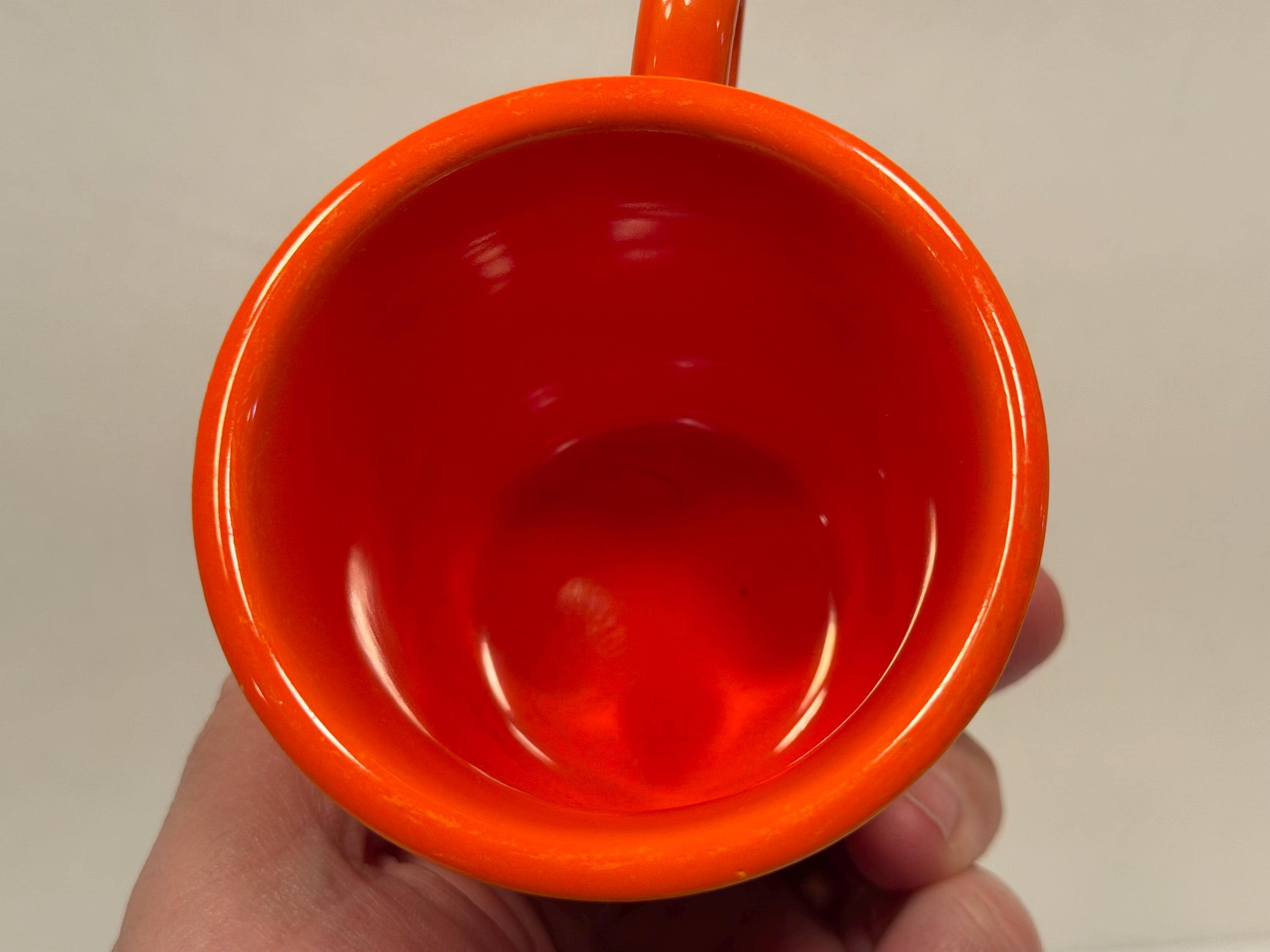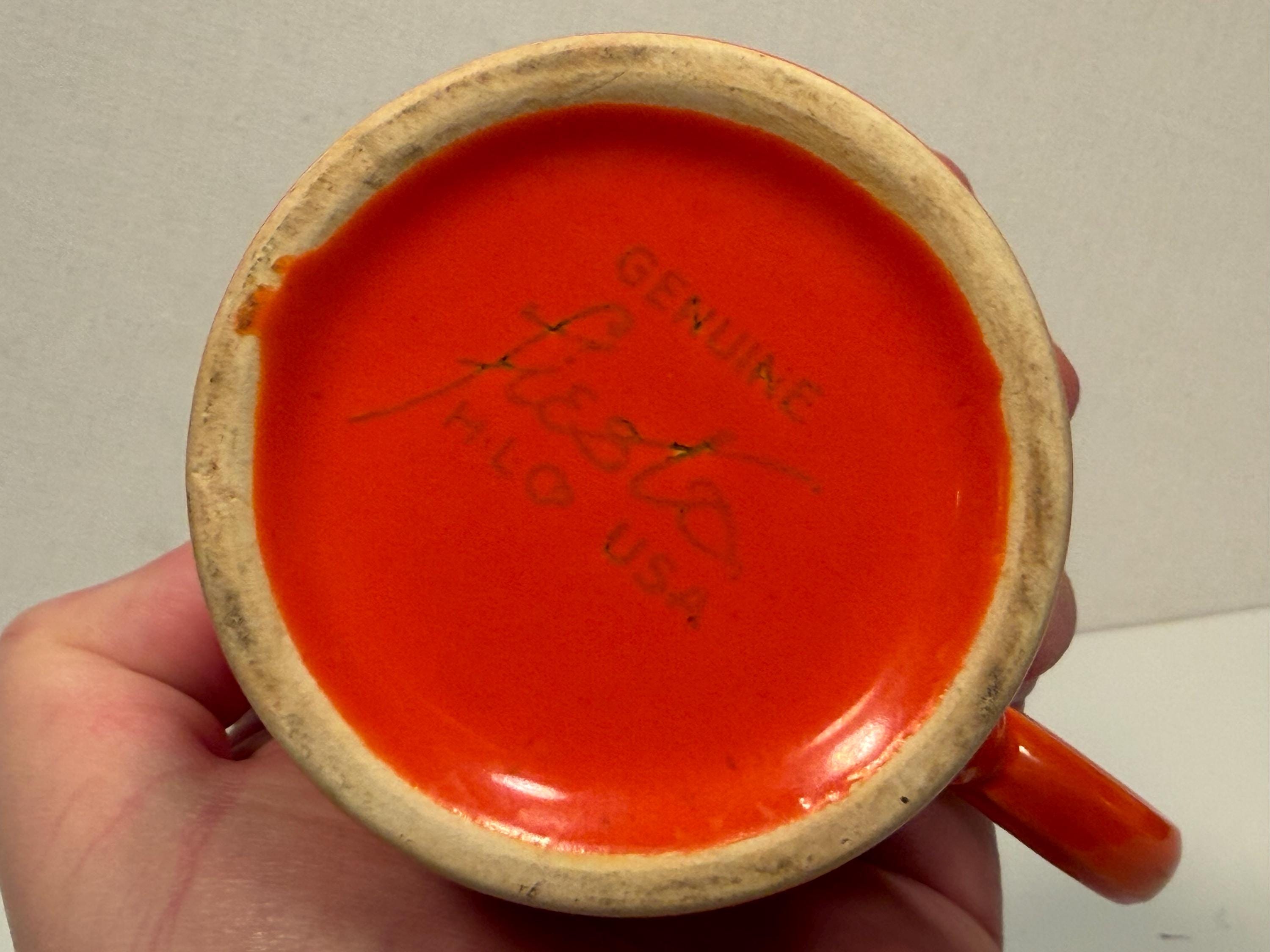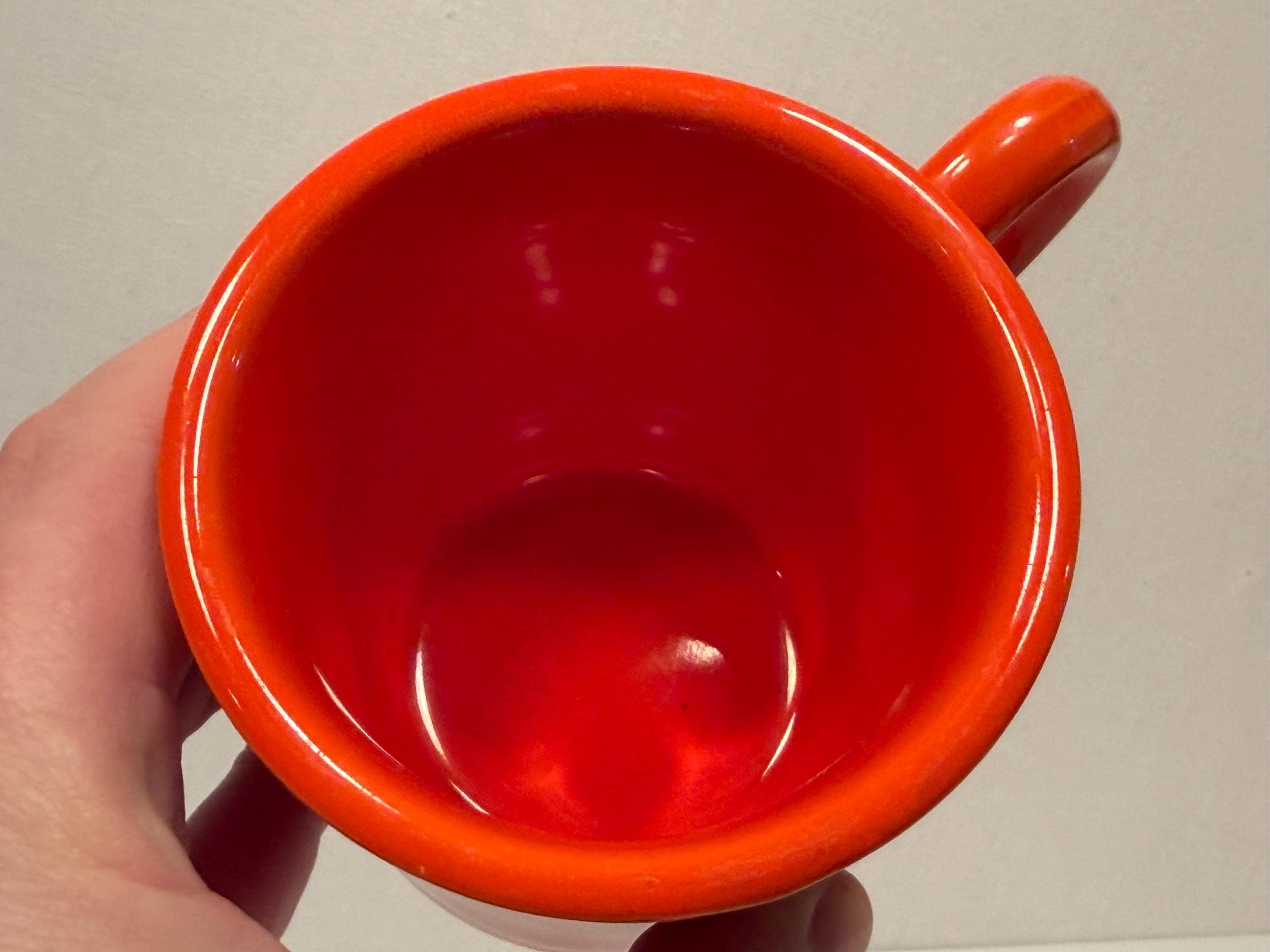 Pre-1942 Fiesta Red Tom and Jerry Mug in great condition with no cracks or chips. Color is good with no signs of dishwasher wear or fading. Great for display or use everyday. Hand washing strongly recommended for longevity. Please see photos for condition and decide for yourself as all sales are final.