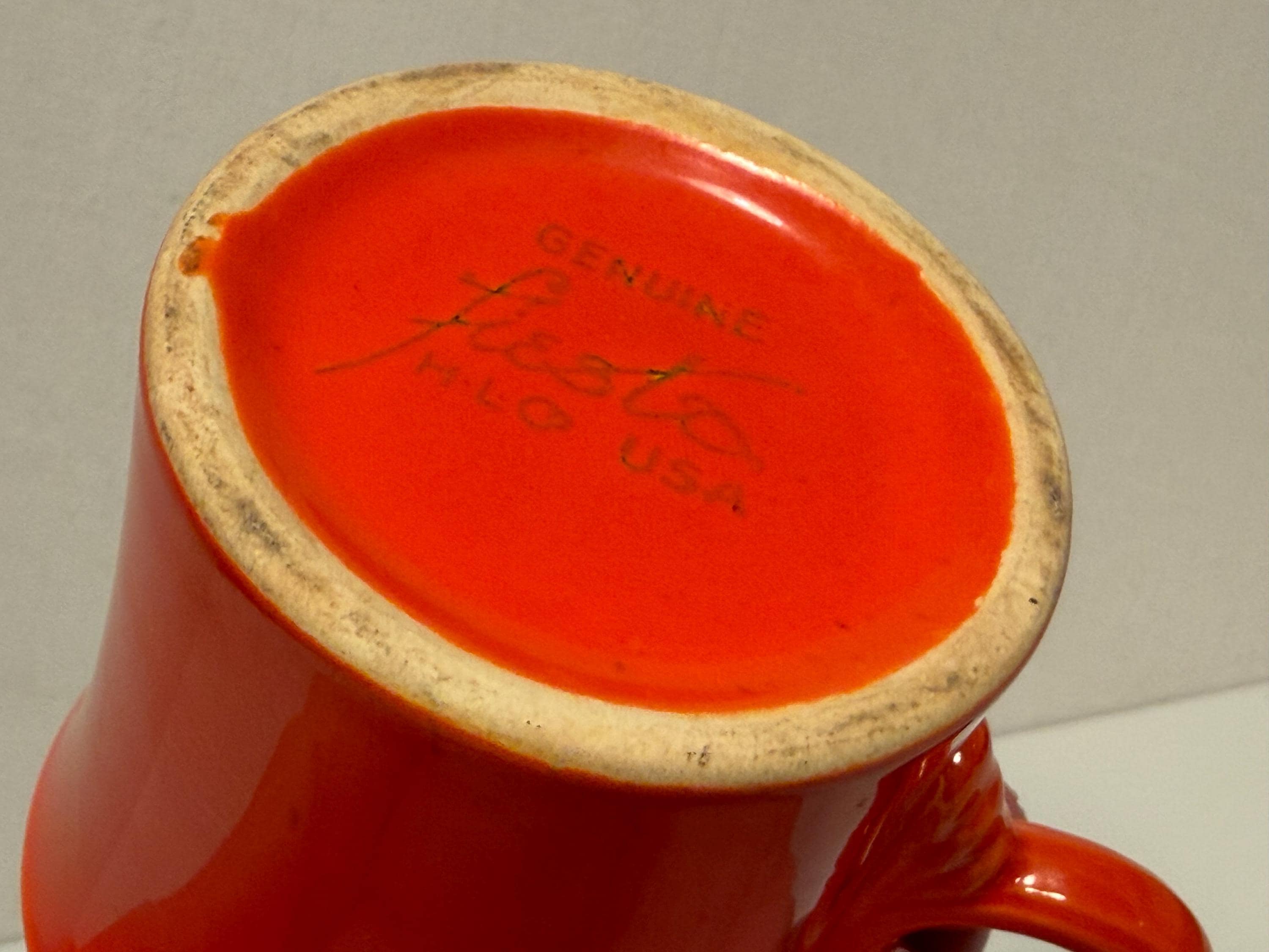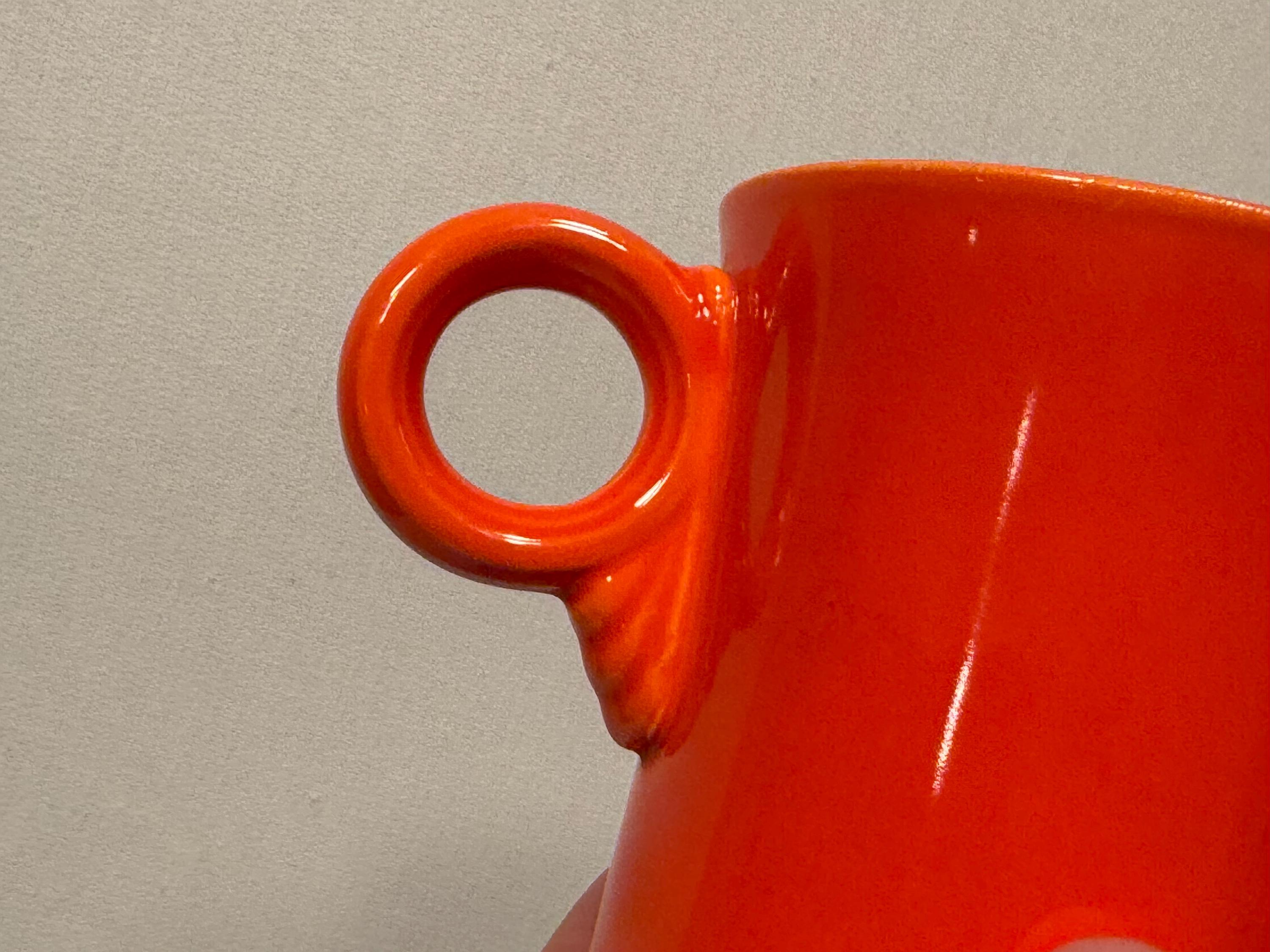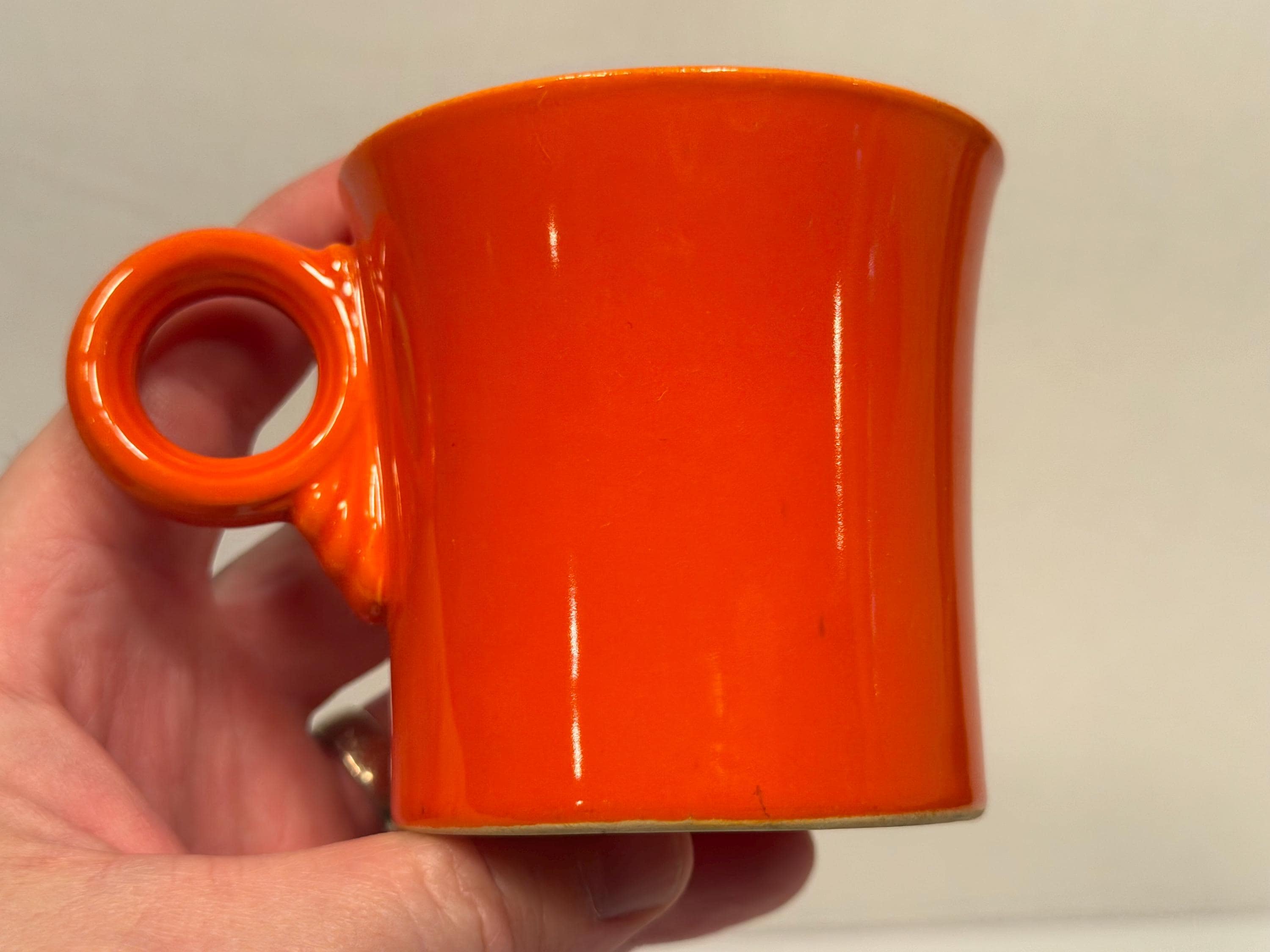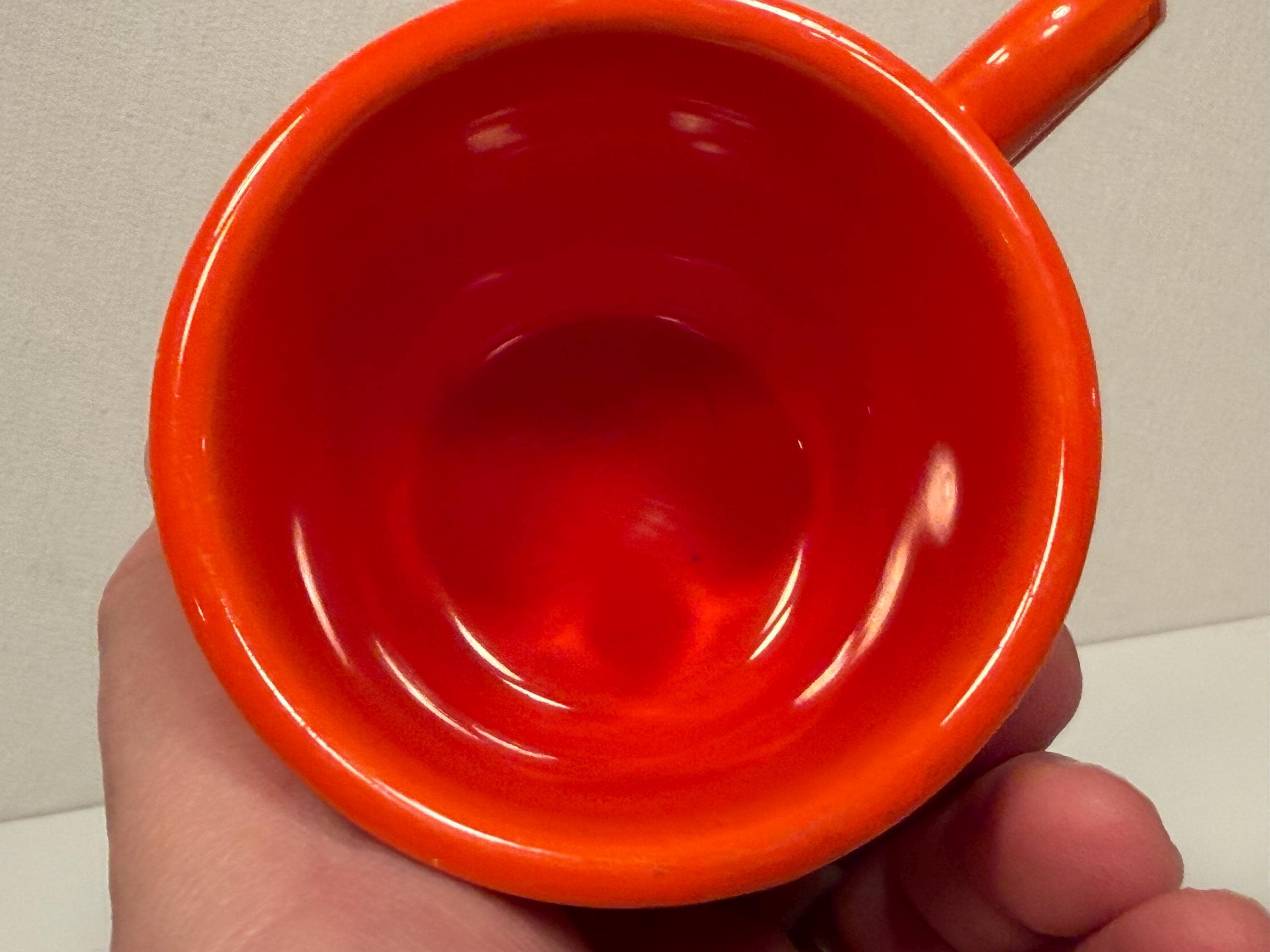 Pre-1942 Fiesta Red Tom and Jerry Mug in great condition with no cracks or chips. Color is good with no signs of dishwasher wear or fading. Great for display or use everyday. Hand washing strongly recommended for longevity. Please see photos for condition and decide for yourself as all sales are final.