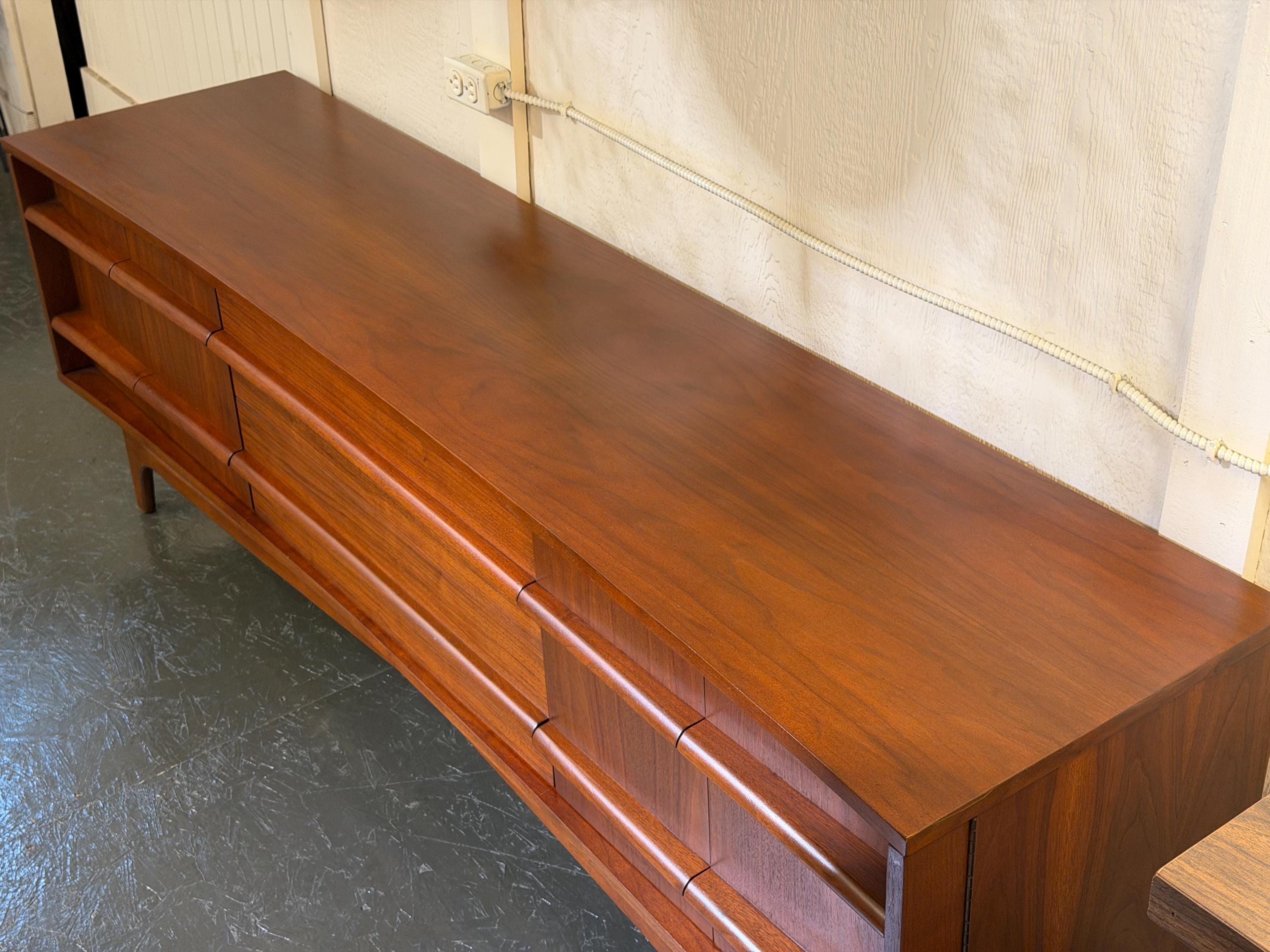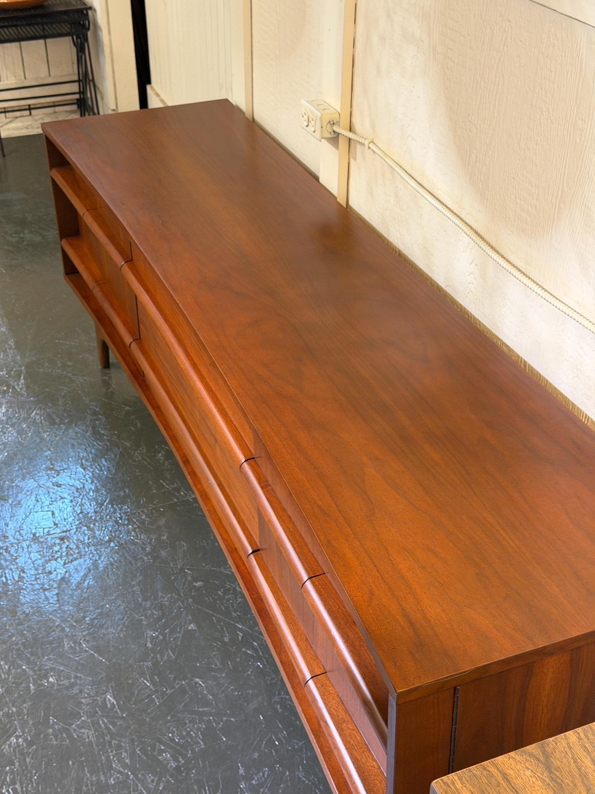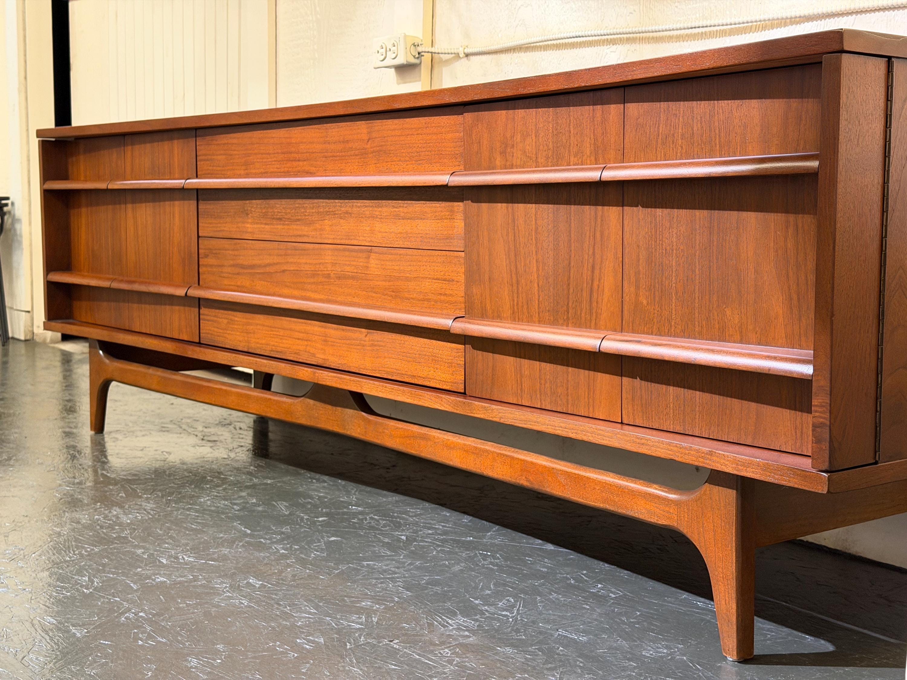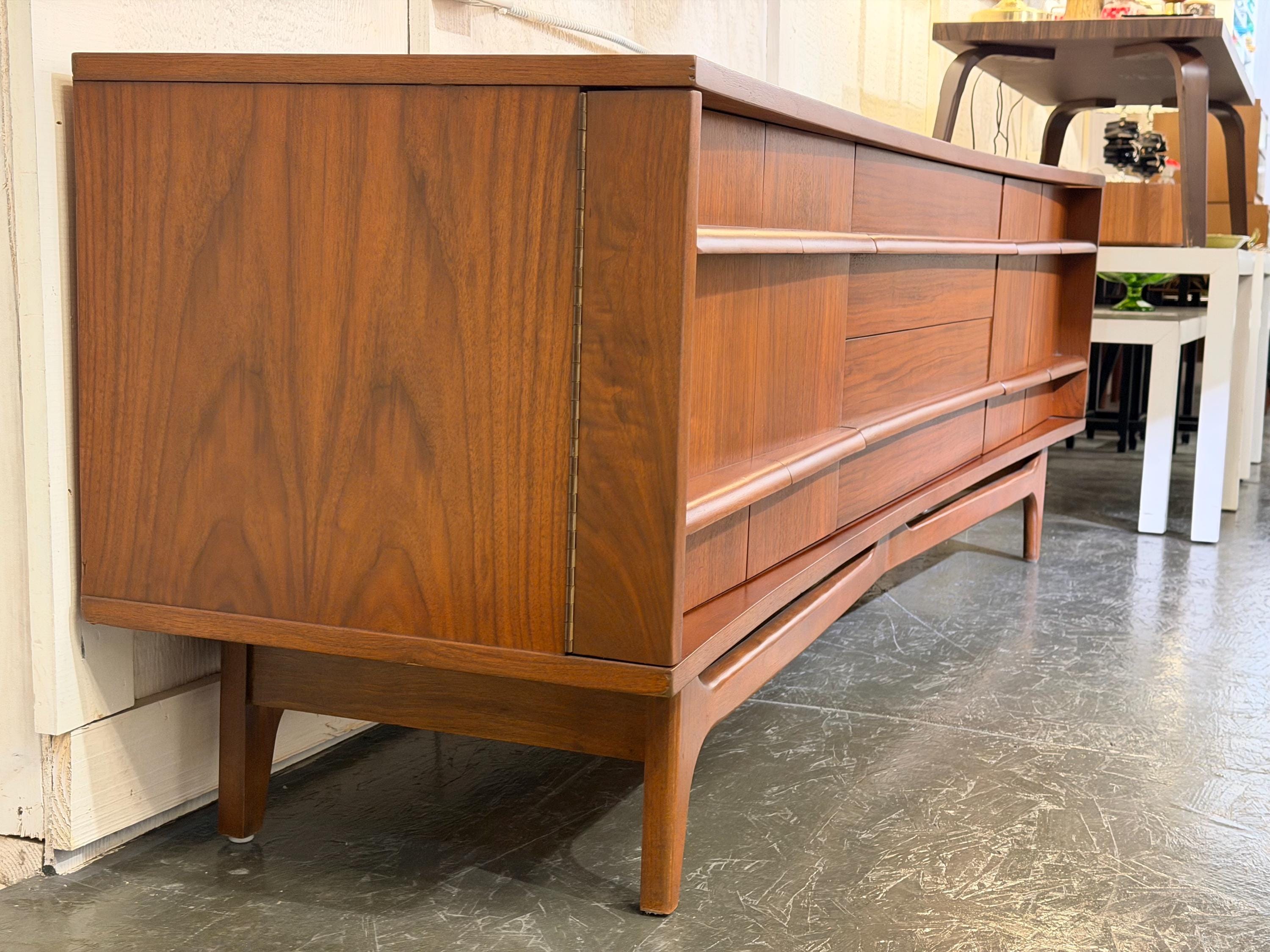 Bowed Front Walnut Credenza by Young Furniture MFG. Co., Circa 1960s - *Please ask for a shipping quote before you buy.