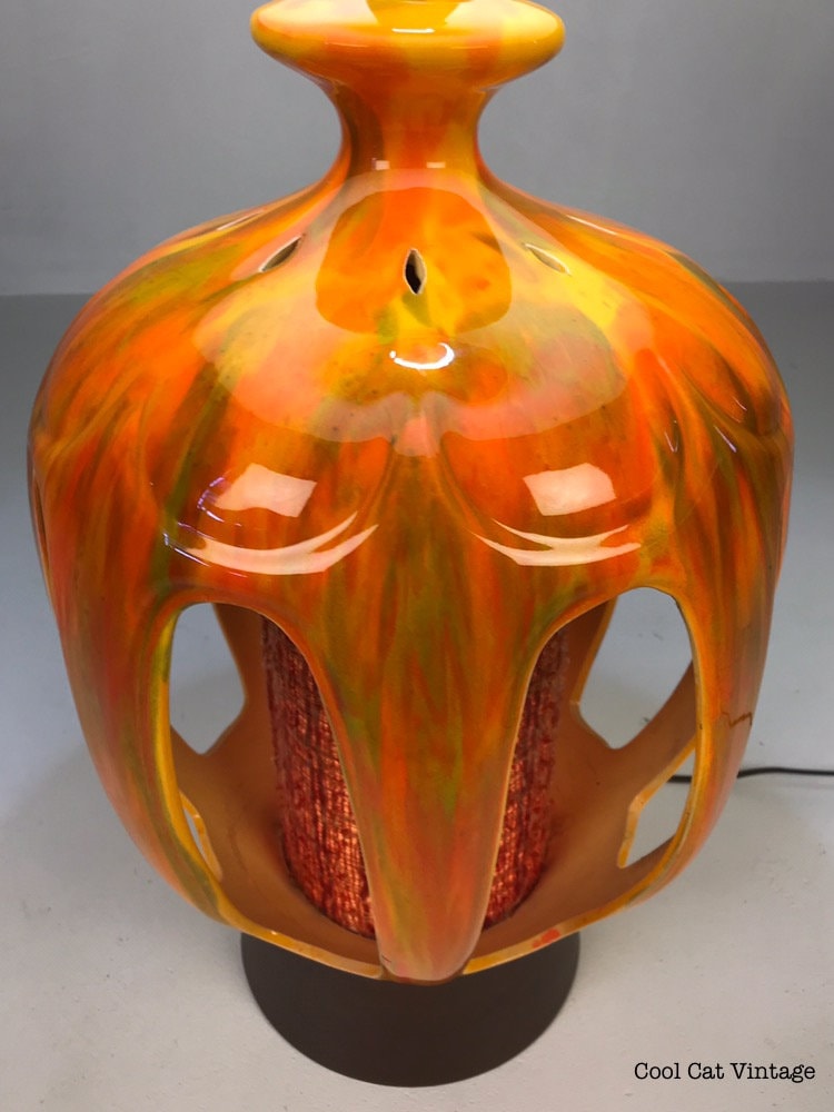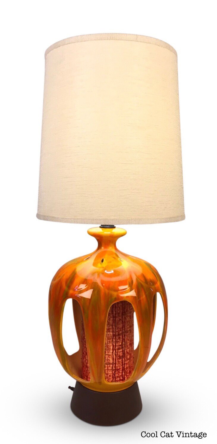 Mid Century Modern Orange Drip Glaze Table Lamp - *Please see notes on shipping before you purchase.