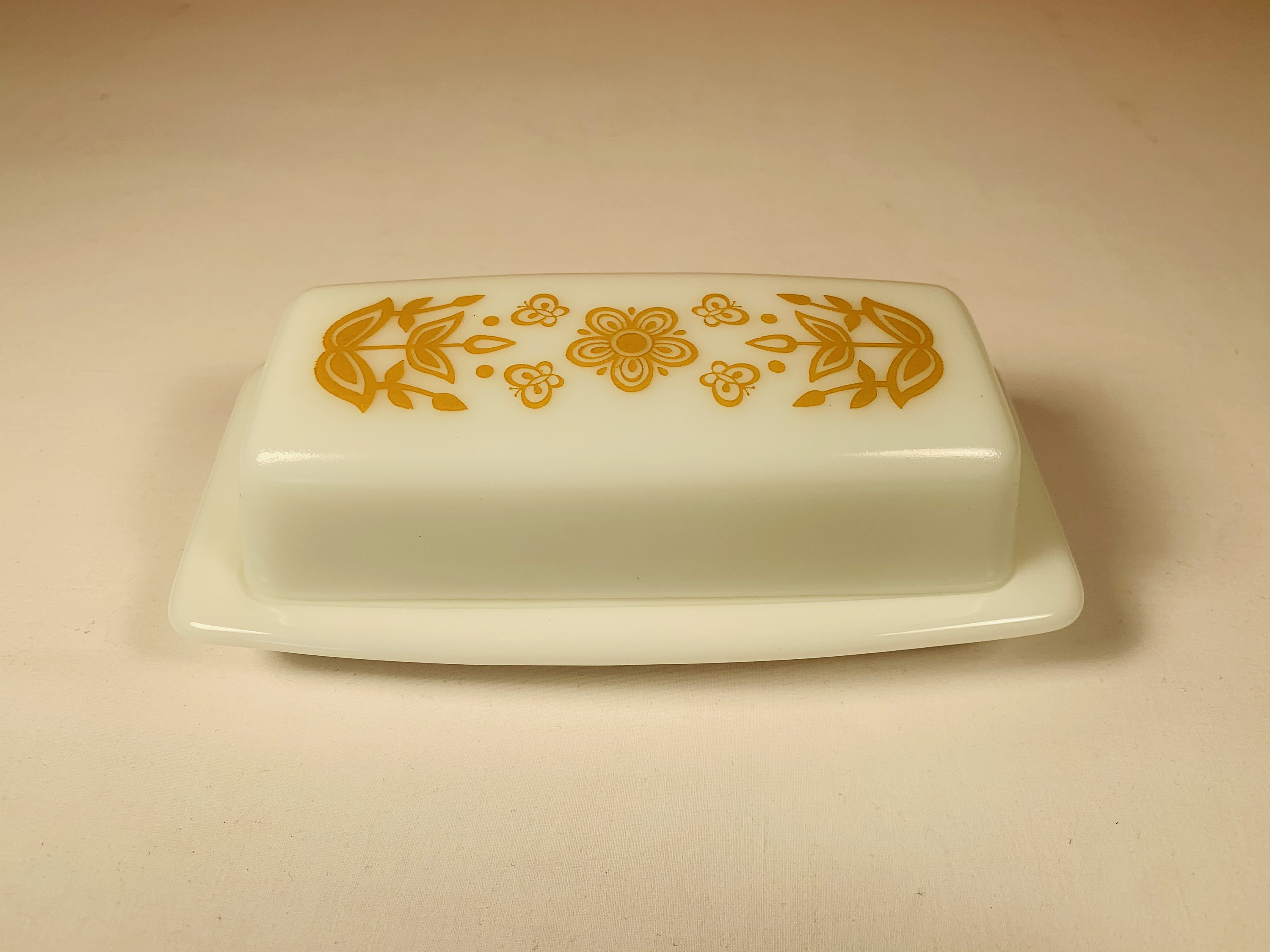 This Pyrex Butterfly Gold Butter Dish is in great original condition with no chips, cracks, or fading to the pattern. The first run of Butterfly Gold was made from 1972-1978 before a redesign in 1979. The first run had the butter dish available in 2 different tones, orange and brown. This is the orange version. Please see photos. Thanks for shopping small!