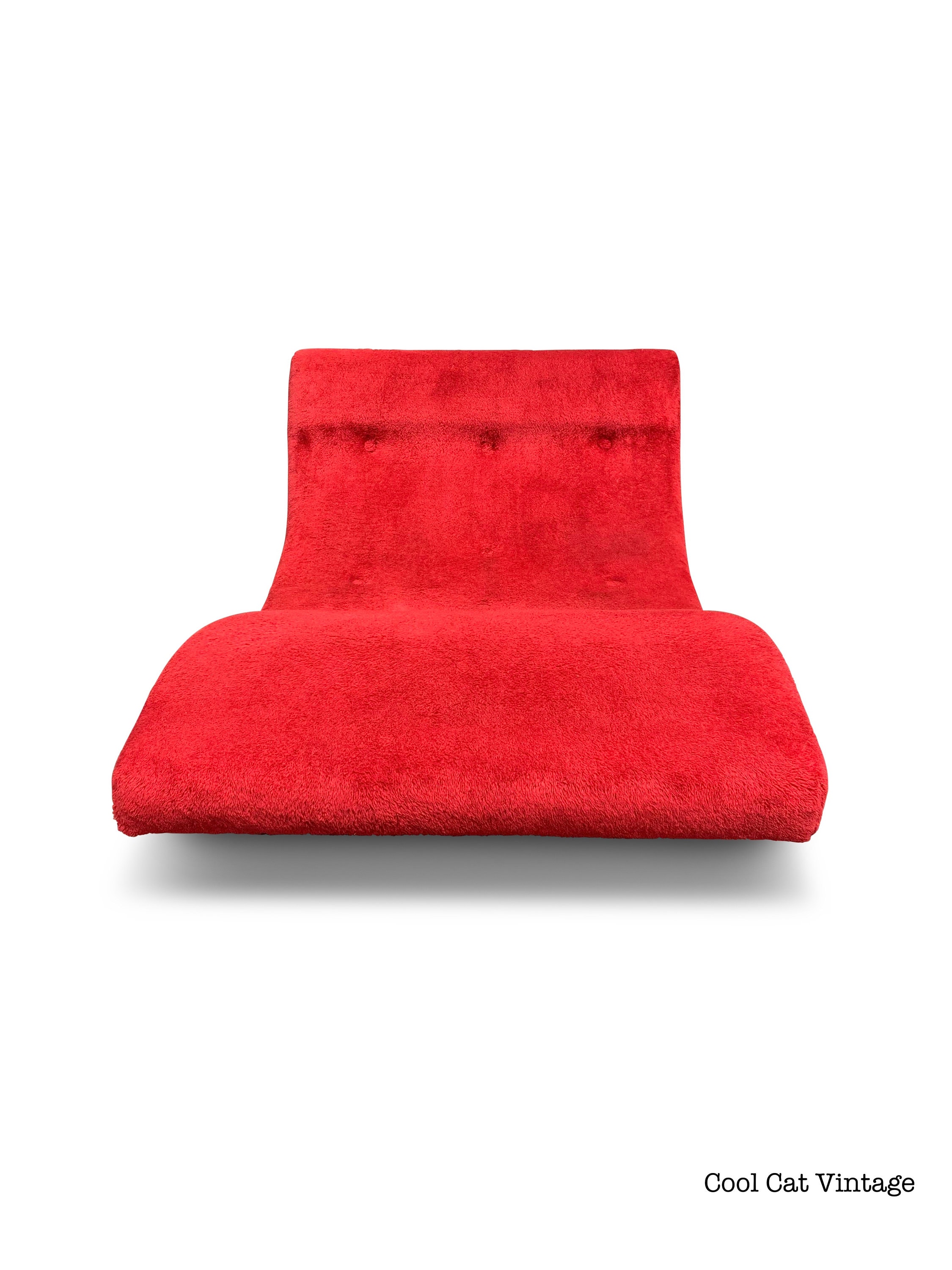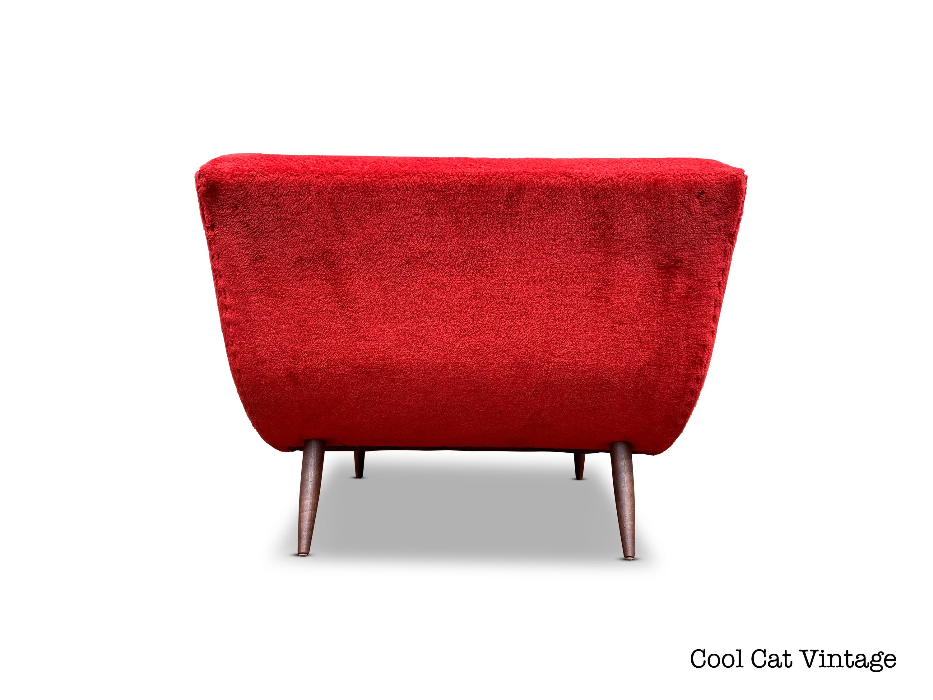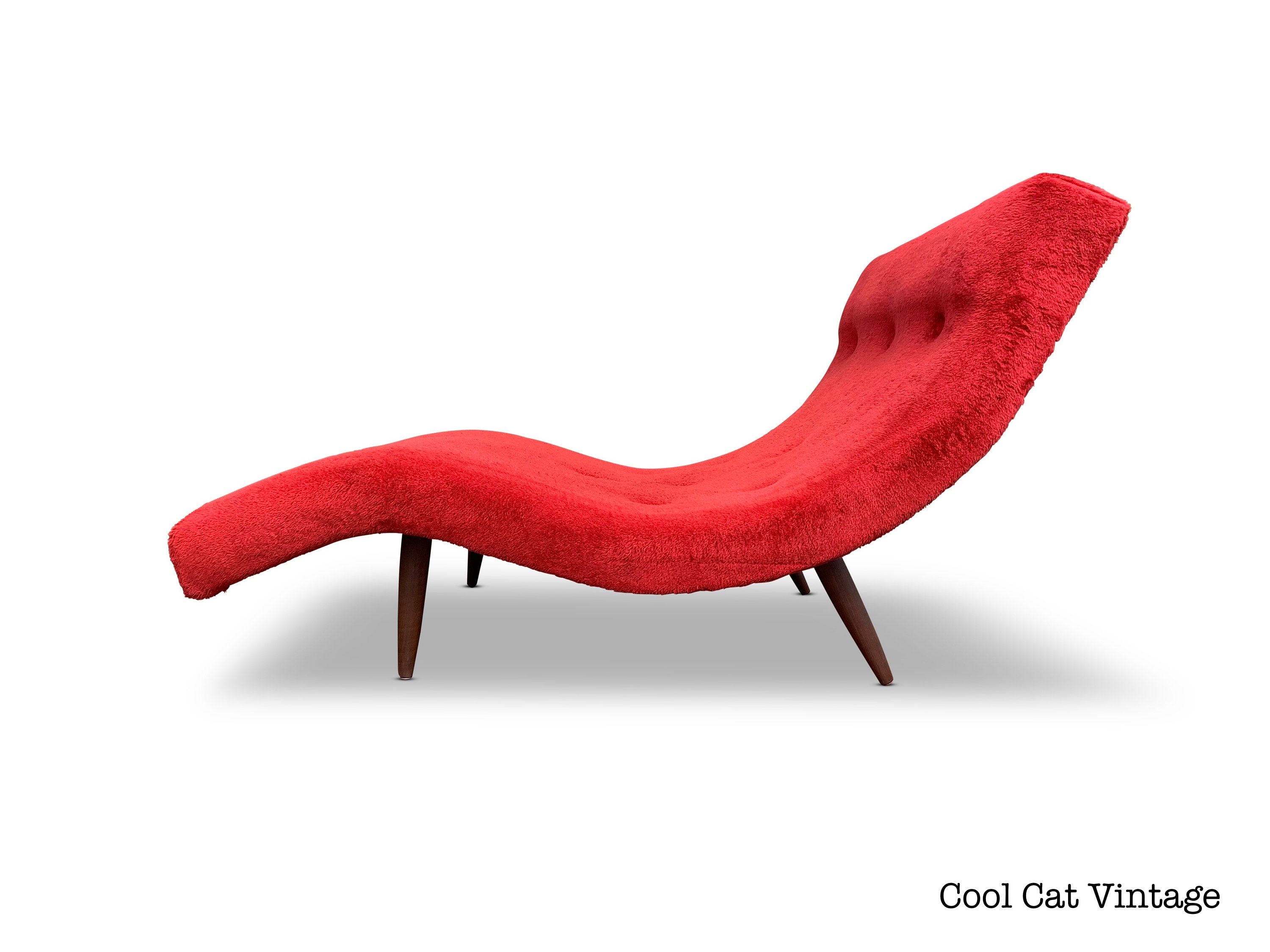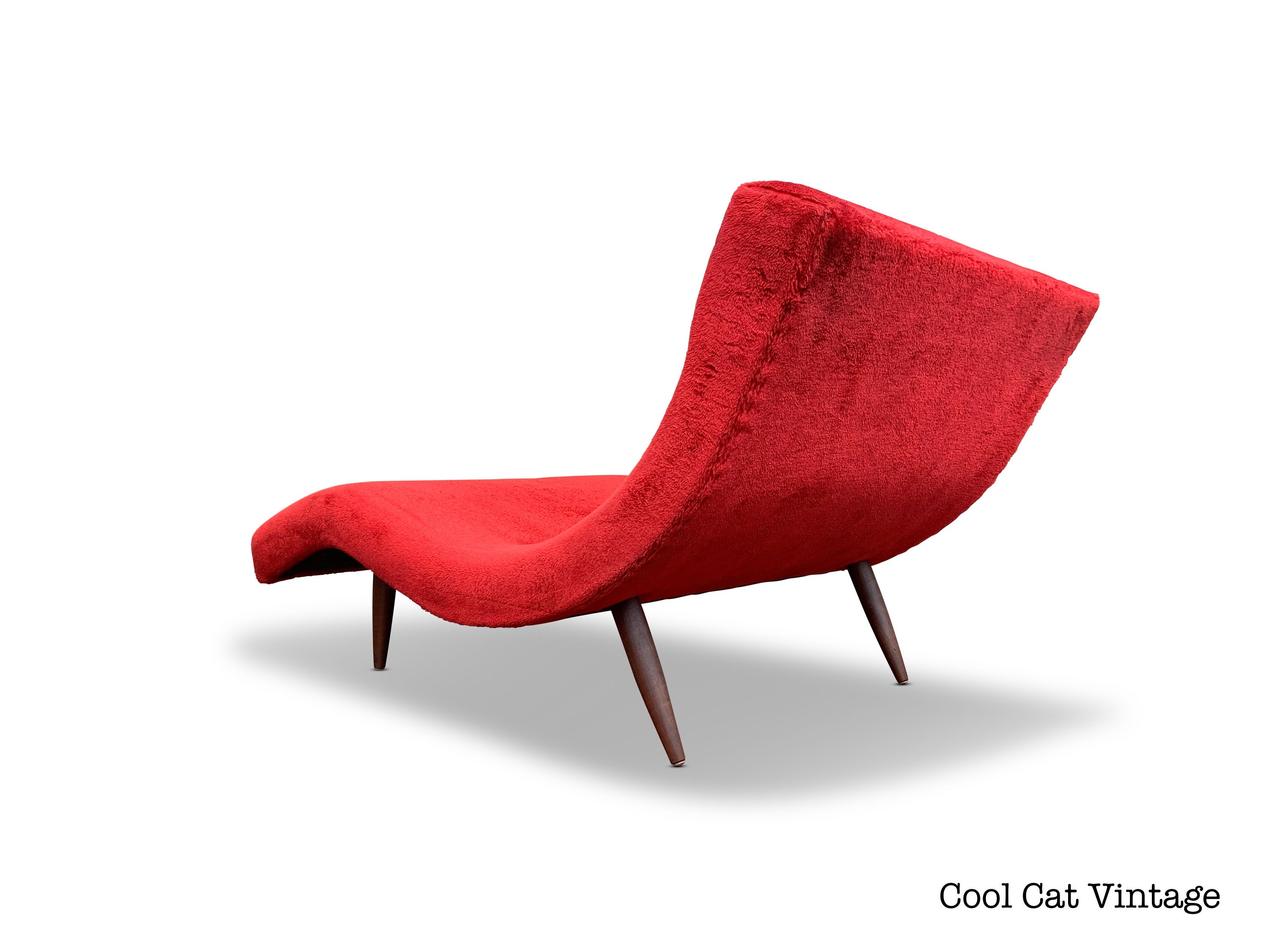 Here is a very cool wave chaise lounge chair by Adrian Pearsall for Craft Associates, circa 1960s. This chair does have its original red fabric, the fabric is clean and is in good condition for its age. We did give all 4 solid walnut legs a good polishing and overall this piece is in good original condition.