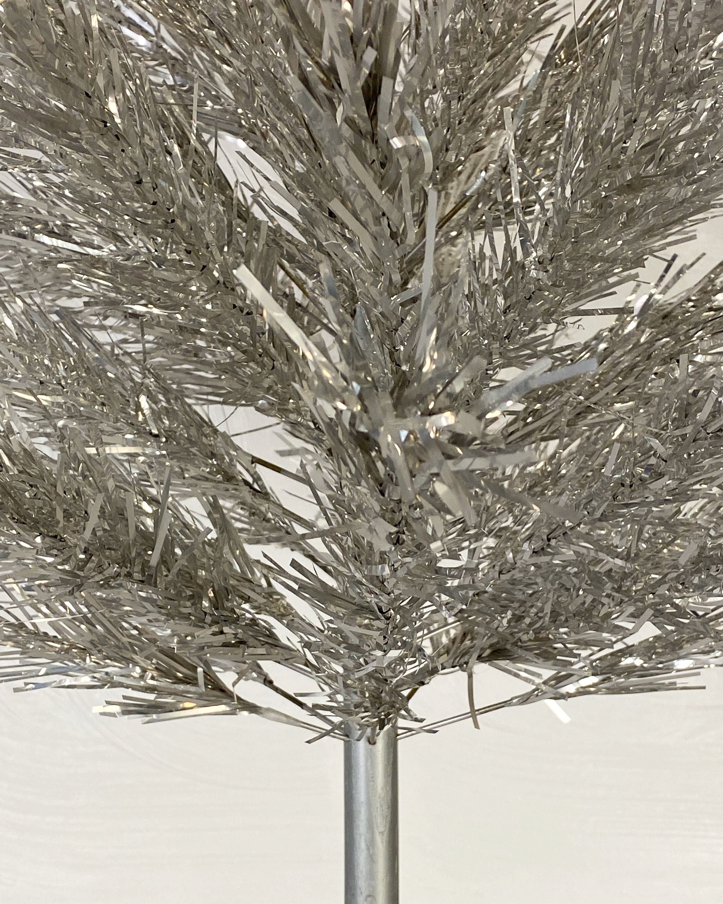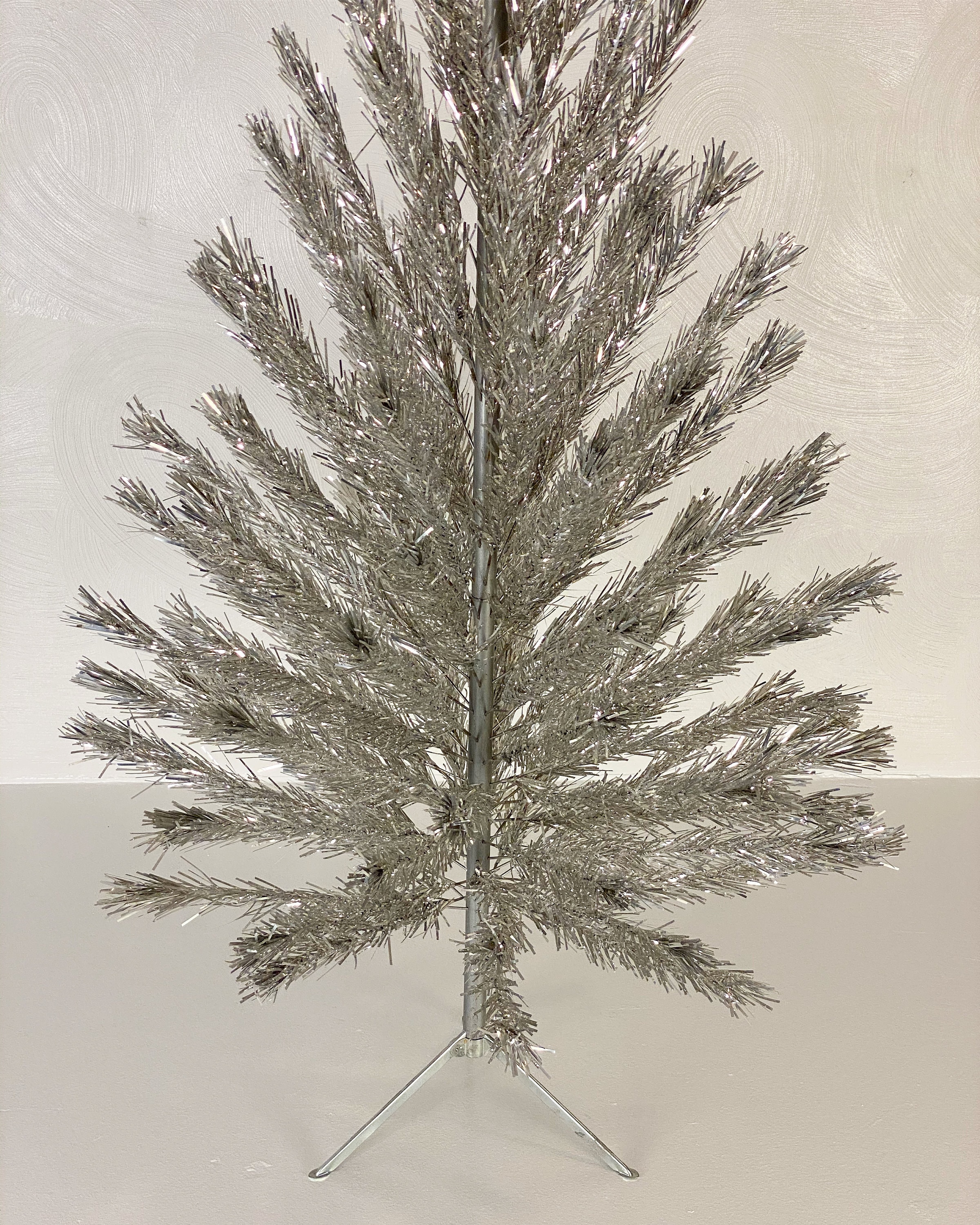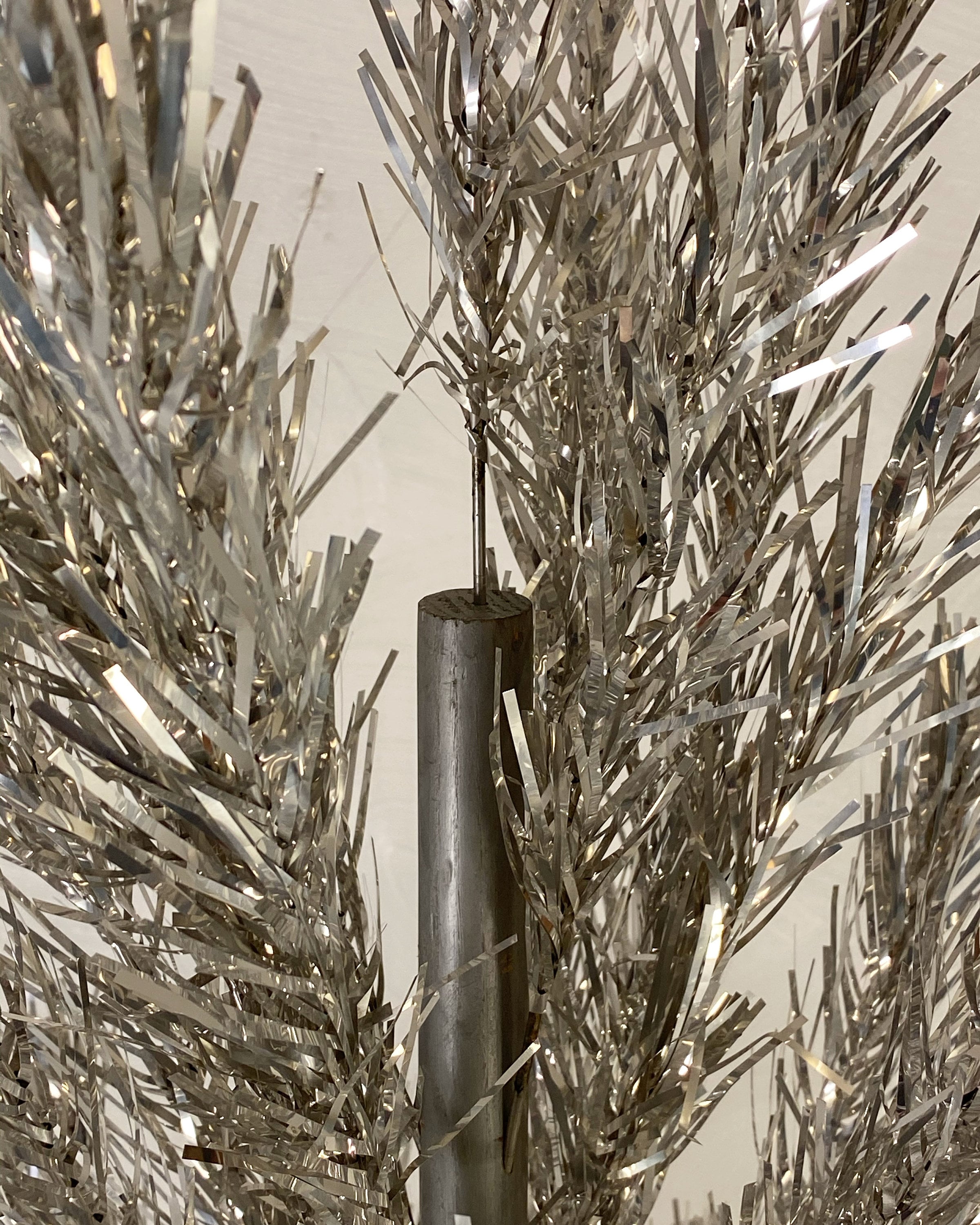 Here is a very nicely preserved aluminum Christmas Tree by United States Silver Tree Company, Scranton, Pa, circa 1950s. This tree has all its 100 branches and all branches are in good condition for their age. This tree was assembled in-house by us and thoroughly inspected for defects. The tree stand is present and it holds up well for its age. Although the tree sits in place well the tree pole does move slightly, we decided to leave this as is and let the new owner add something to strengthen this should they wish to do so. All branches are intact and were stored in their original paper sleeves so they keep their shape well when removed. This tree does not come with its original box and overall this tree is in good original condition.